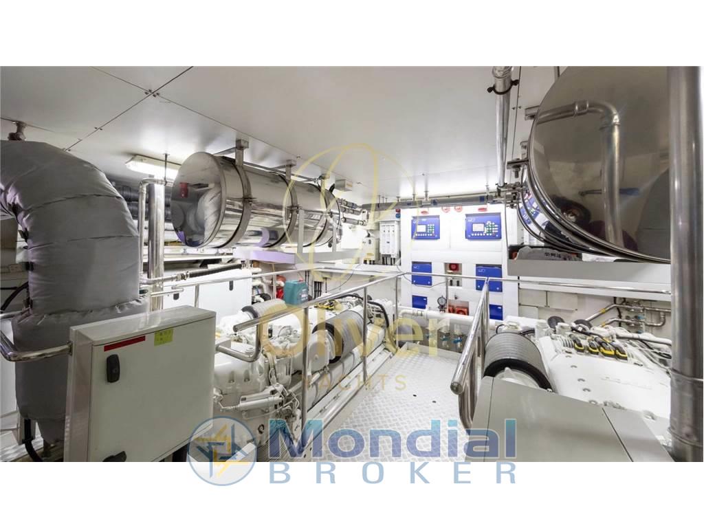 Equipaggiato con due motori MTU 12V 2000 M93, è capace di raggiungere una velocità massima di 26 nodi, con una velocità di crociera di 18 nodi, rendendolo ideale per navigazioni rapide e confortevoli. Con una capacità di carburante di 19.500 litri e un serbatoio d'acqua dolce da 4.000 litri, lo yacht è progettato per crociere di medio-lungo raggio.