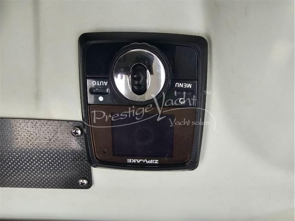 Allarme motore, Ancora, Autoclave, 02 Batterie, Caricabatterie, Doccia esterna, Flap idraulici (Zip Wake), Impianto antincendio, Indicatori flaps, Luci di cortesia, Piattaforma, Pompa di sentina automatica, Presa 220V banchina, Salpa ancora elettrico, Scaletta da bagno, Tavolo in pozzetto, Tromba Frigorifero esterno Prese interne 12V Altoparlanti, Stereo Angolo barra, Bussola, Comando motori elettronico, Contamiglia, Ecoscandaglio, GPS, Plotter Bimini, Cuscineria di poppa, Cuscineria di prua, Cuscineria pozzetto, Telo copri consolle, Tendalino