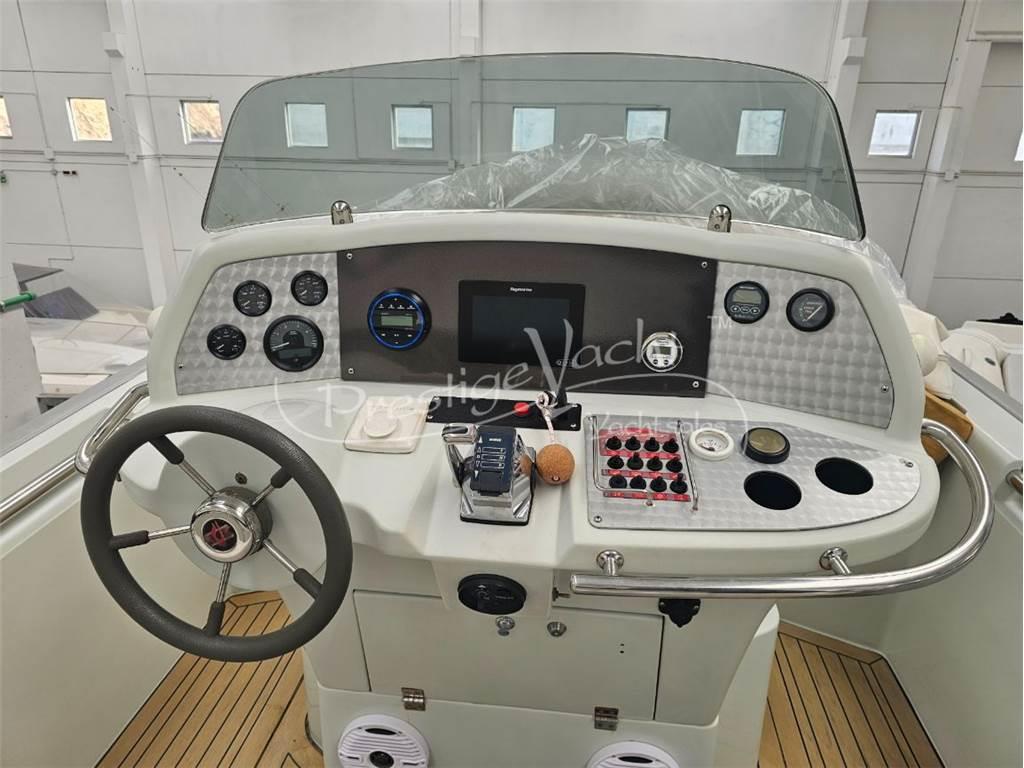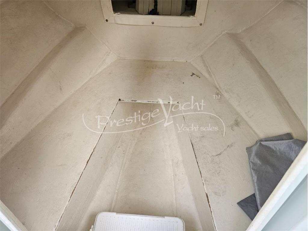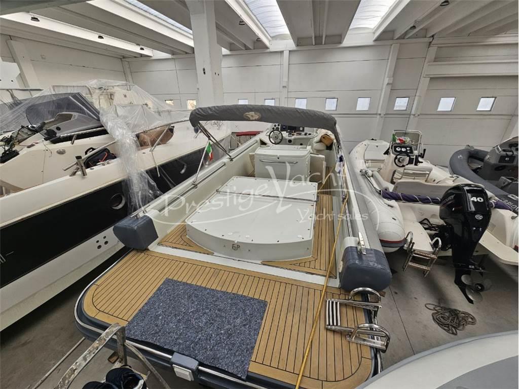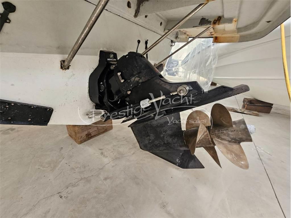 Scafo grigio, teak sintetico su tutto lo scafo, cabina di prua non allestita, motore Mercruiser nuovo e piede revisionato.