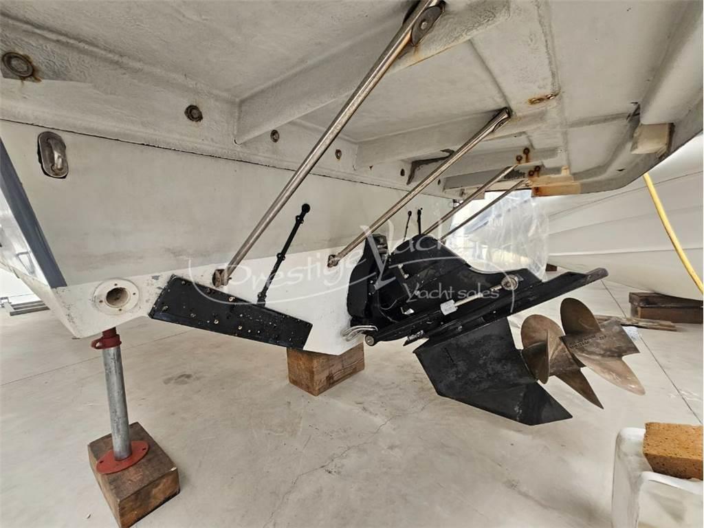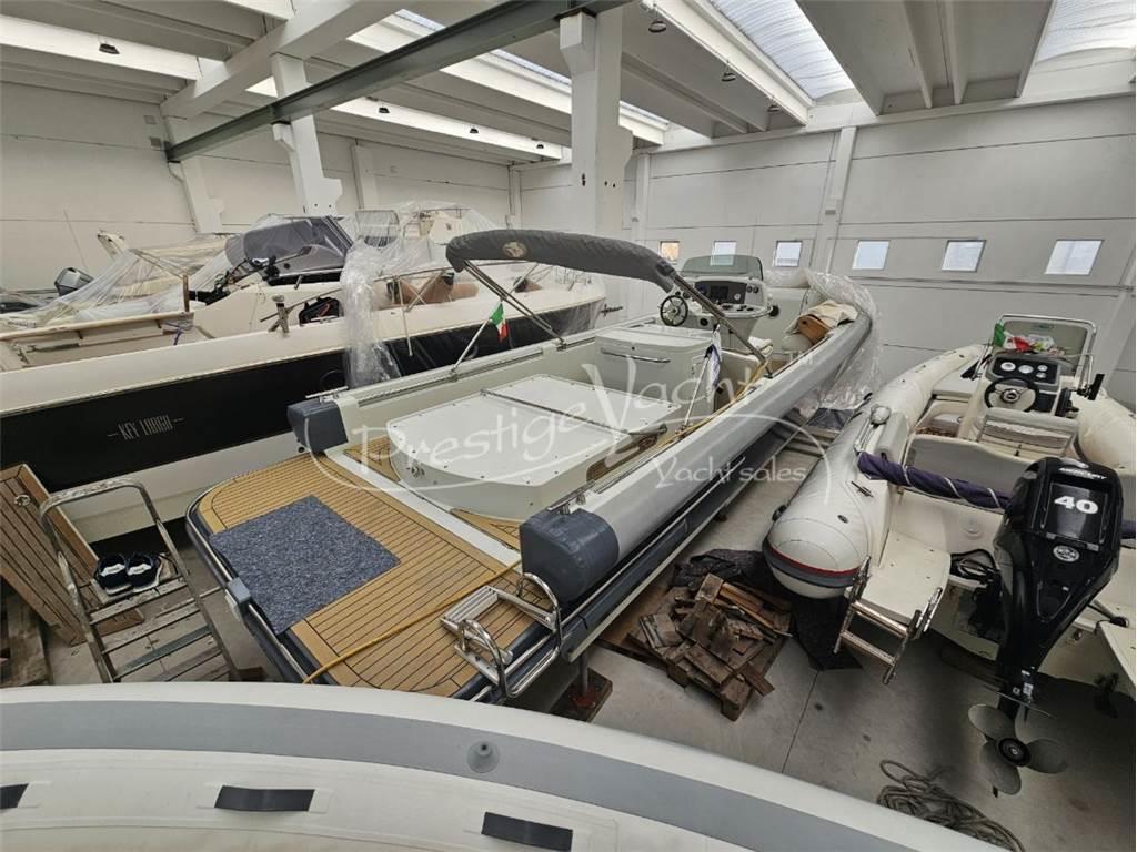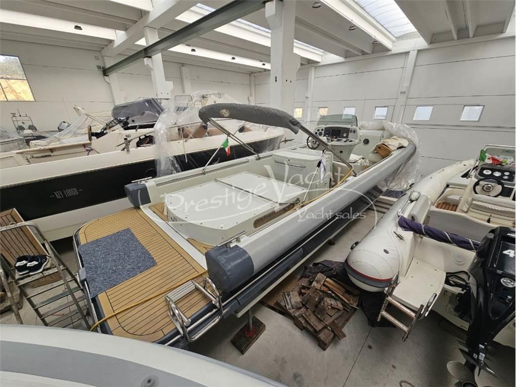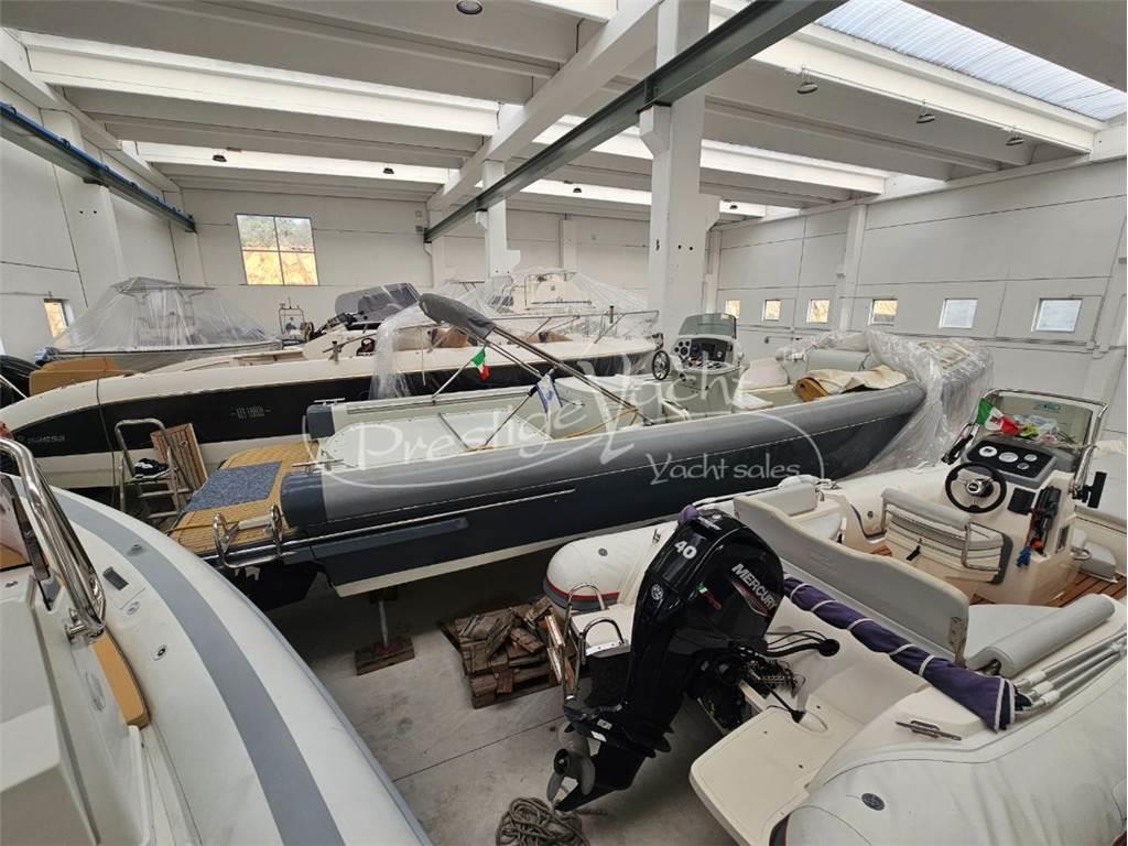 Scafo grigio, teak sintetico su tutto lo scafo, cabina di prua non allestita, motore Mercruiser nuovo e piede revisionato.