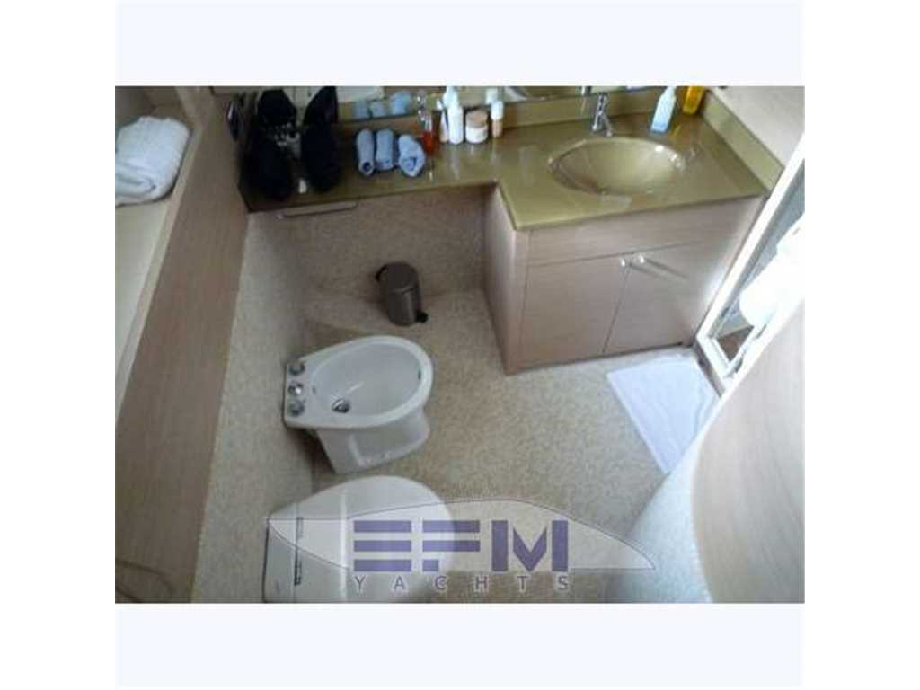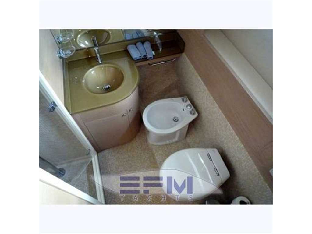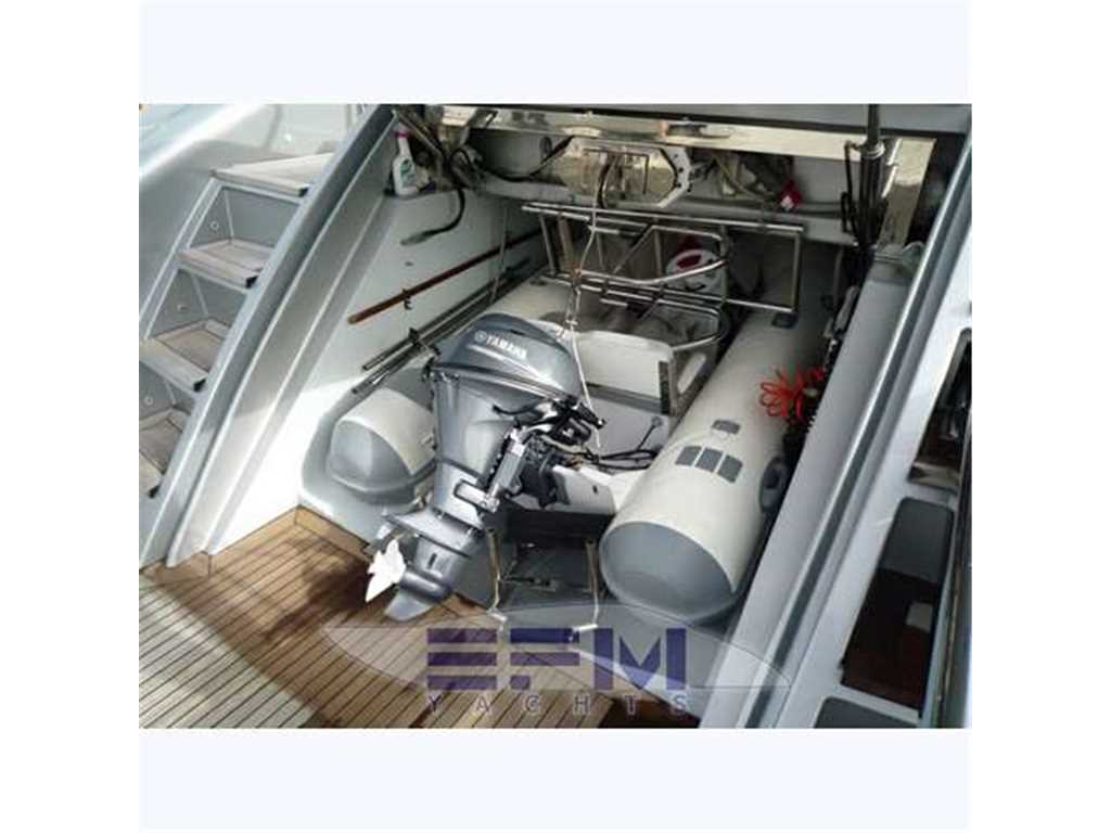CCTV system, Ice maker, bow thruster, hydraulic Hangar tender, electric blind in the cockpit, plus retractable gangway Edan, Tecnomar watermaker 140 l / h, 4 rattan chairs in the cockpit - cabin crew in the bow with 3 beds and private bathroom with shower - double settee and table converts to a sunbed, cockpit and swim platform aft teak allanguta - 2 aft mooring winches - two generators Kohler 20 kw. - Cooling Tropicalized from 60,000 btu separate in every room with double heat pump - Ice maker - HONEY Appliances: Dishwasher, Large Fridge to 'American 300 lt. freezer, washing machine + dryer, ceramic hob with 4 burners, extractor hood - Suncushion complete fore and aft deck, cockpit table, fiberglass coprifinestrature and closing stern - Coatings Bisazza mosaic bathrooms .. with shower, bidet and wc electric - black and gray water tanks - complete safety equipment x 12 people, double anchor windlass forward with electric steering and transmission in-LCD TV 42 'PANASONIC in living room with DVD and Hi-Fi Bose System - LCD TV PANASONIC 32 'cabin - two LCD TV 22' SHARP AQUOS in guest cabins - dolby surround-fi system with Bose speakers and home theater - Sat SEATEL antenna with DVB Terrestrial - maintenance and sostiuzione Raiser and exchangers nal 2011 - opening garage with electro - tender 3.60 per center console with engine yamaha 40 hp -