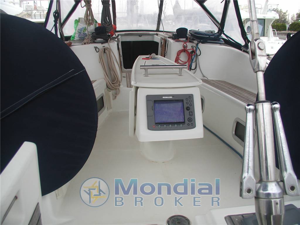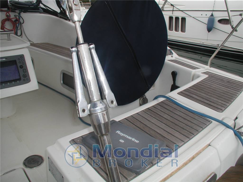 Barca attrezzata per essere usta con un equipaggio molto ridotto con tutte le manovre rinviate a pozzetto e con avvolgiranda all'interno dell'albero a due crocette, strallo di prua con avvolgifiocco, pulpito di prua con battagliole e cancelletti a mezza nave, sartiame spiroidale, boma con vang rigido, 4winchs tutti ST di cui uno elettrico, tavolo pozzetto molto grande sedute pozzetto ricoperte in teak, due ruote timone con pulpito a poppa con apertura centrale per poter accedere alla plancetta di poppa, barca con due rande una usata e una nuova così pure per i genoa avvolgibili. Bimini. Capottina. telo invernale, tromba, passerella a poppa.