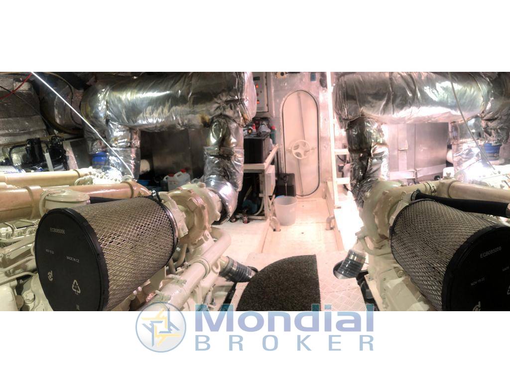 Aria condizionata, in tutte le cabine e riscaldamento, elica di prua, microcomandi motori, sincro manette, passerella idraulica a scomparsa, pedana lunga in teak massello, ponte in teak, pozzetto in teak, tutti tendalini doppi, cuscinerie, pozzetto prua e fly,, due carica batterie, carica batterie generatori, batterie tutte nuove 2021, 2 generatori kholer revisionati, gruetta per alaggio varo tender revisionata 2021, cabina marinaio allestita, TV LCD a scomparsa in dinette, impianto satellitare, impianto stereo revisionato 2021, tende nuove