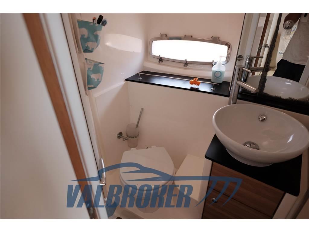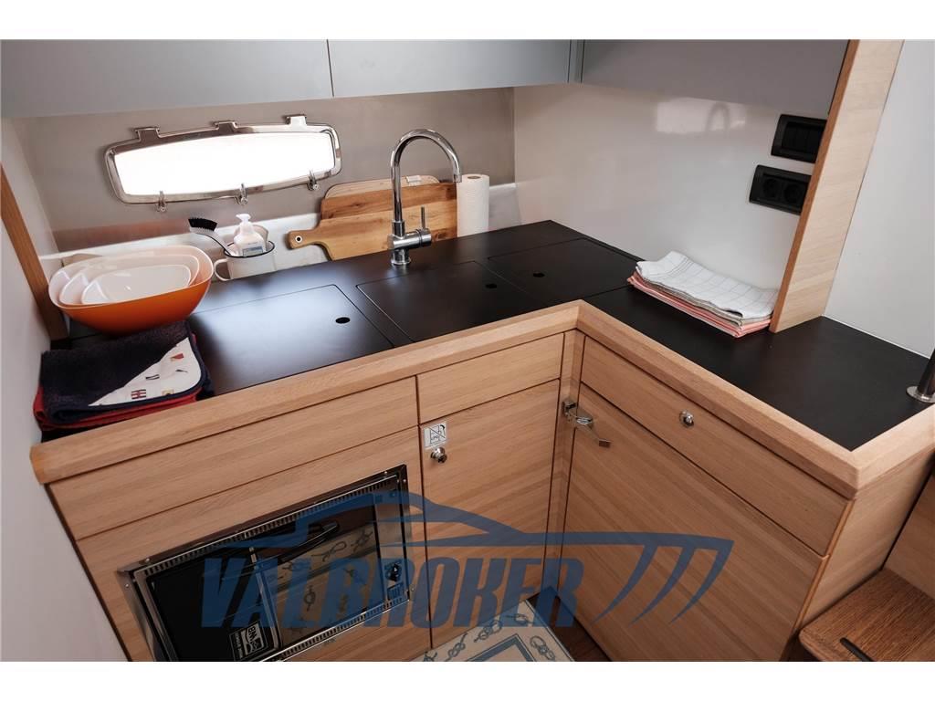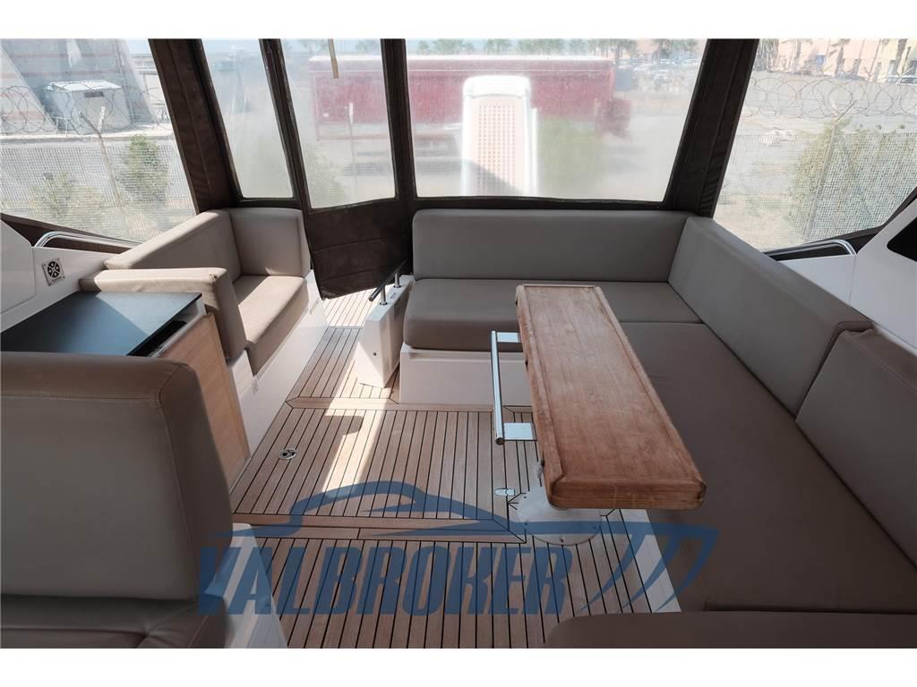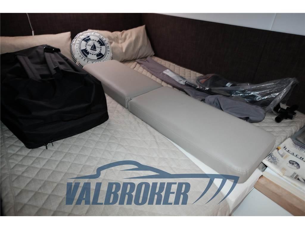4 Altoparlanti (2 salone; 2 pozzetto), BBQ/ Grill (pozzetto), Boiler (Con scambiatore di calore), Cuscineria di prua (colore beige extra imbottiti), Forno (Smeg), Frigorifero esterno (pozzetto), Frigorifero interno, Impianto acque nere, Impianto TV, Pavimento interno in legno (quercia scuro), Prendisole aggiunto, TV (Samsung nel salone), WC marino elettrico, Divano salone in pelle chiara ; stazione meteo Oregon; Upgrade cuscineria esterna Movida Sand; Serbatoio settico tipo G, con maceratore elettrico, scarico in coperta con valvola a tre vie per scarico diretto WC a mare; Volante regolabile edizione speciale con logo;Tappezzeria salone pelle Ivory;