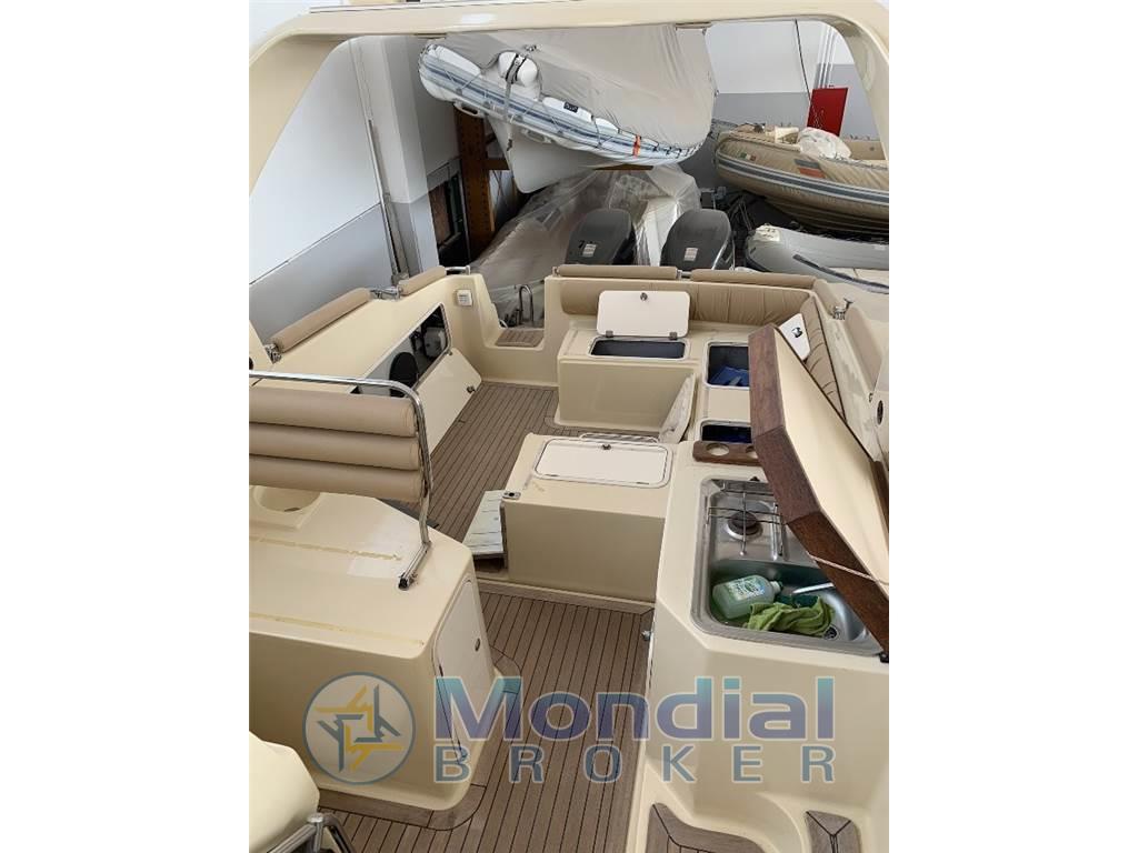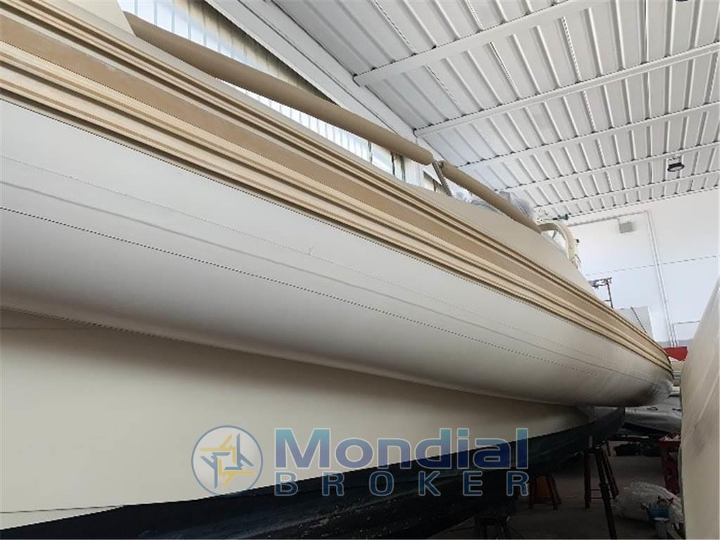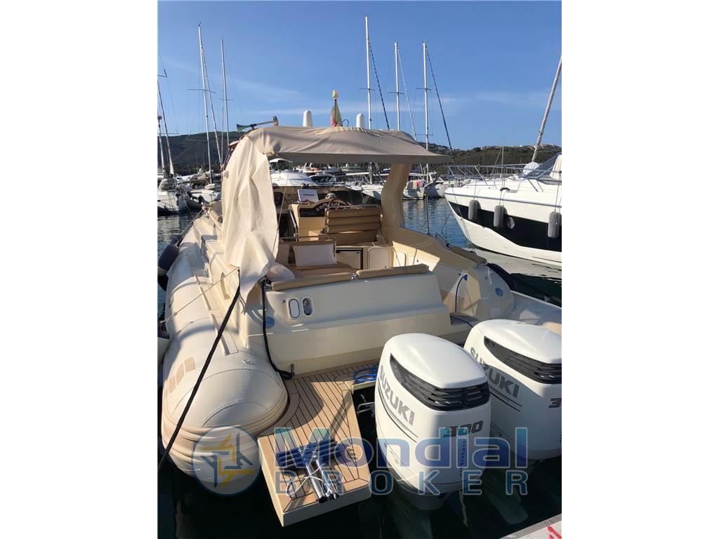 tenda notte e giorno nel bimini ; 2 braket; manette elettroniche; eliche dual-prop; prese usb sia interne che esterne; inverter 2000; boiler; tutte le luci a led; antenna tv; moquette interna rimovibile e lavabile; sempre rimessato al coperto, in acqua 15 giugno al 15 settembre; compressore per il gonfiaggio dei tubolari, copertura integrale per la notte ;Tende giorno e notte più bimini per il giorno anti sole, copertura pozzetto fino a consolle per soste giornaliere, copertura consolle per la notte anti umido. rivestimenti in tek su tutto l’esterno. spiaggetta completamente rifatta su disegno con scaletta di design Osculati a blocco automatico, passerella ripiegabile ; 2021 NUOVO : scorrimento pali tendalino posteriore, a copertura di poppa in bimini crema, spiaggetta nuova in flexitec , scaletta, impianto idraulico con posizionamento cassone per l’acqua a poppa 200 litri, rivestimenti in pelle dei tientibene, fuochi cucina. Interni impianto audio di nuova generazione con sistema Glauk con due zone interne ed esterne impianto invisibile con eccitatori, tubi corrugati motori, gavoni di poppa stagni ; 2024 installati 2 Suzuki 350 uno del 2019 e uno 2023 ; 2024 NUOVO: elica di prua, GPS e plotter Garmin, impianto elettrico ; 2025 NUOVO: aria condizionata Frigomar, WC, timoneria idraulica Ultraflex ; mediazione del 5% +IVA 22% a carico dell' acquirente (IVA si calcola sull' importo della mediazione) .