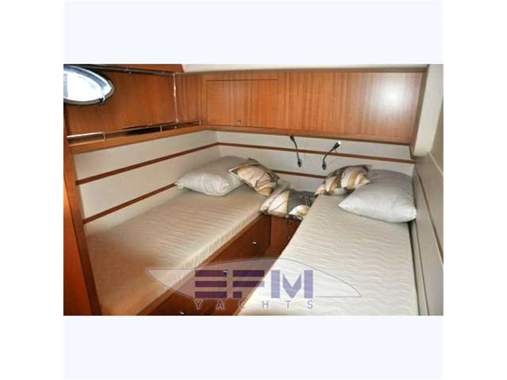 Interior very beautiful and elegant in the Tanganyika walnut, light-colored mahogany floors and cream-colored sofas - Large and bright master stateroom forward with island double bed with drawers, wardrobe and private bathroom with sink toilet and shower - guest cabin with 2 twin beds and wardrobe straight - left third cabin with a single bed in one and a half - with external access second large bathroom with sink toilet and shower - Bright large dinette with a sofa in microfiber cloth convertible clear with additional axis in a comfortable bed in one and a half + fir wooden table with separable puff - LCD TV 20 'Sharp Aquos TV wall + plant and equipment STREO cd + dvd - as opposed to the dinette side we find the right Mobile full kitchen with large fridge, ceramic vetroceranica with 2 burners, microwave oven sharp circular sink and Corian shelf -