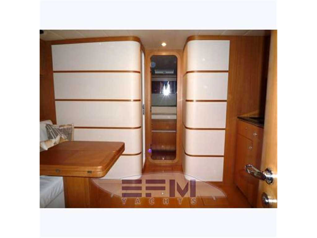 Ovviamente, la disposizione degli interni , i suoi arredi , le scelte dei tessuti e dei rivestimenti sono sempre prescelti in accordo con l'armatore. Comunque l'essenza standard prescelta dal cantiere, il noce Tanganika ha spiccate caratteristiche di sobria eleganza, come si addice ad una imbarcazione di classe.