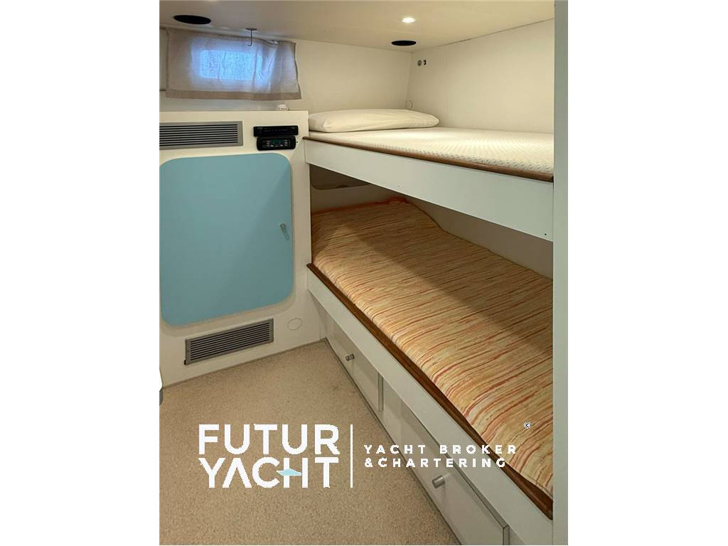 Dal disimpegno centrale del ponte, verso prua si incontrano due cabine identiche con letti affiancati, oltre a un utile terzo letto a pullman e, più avanti, altre due cabine gemelle con letto alla francese.