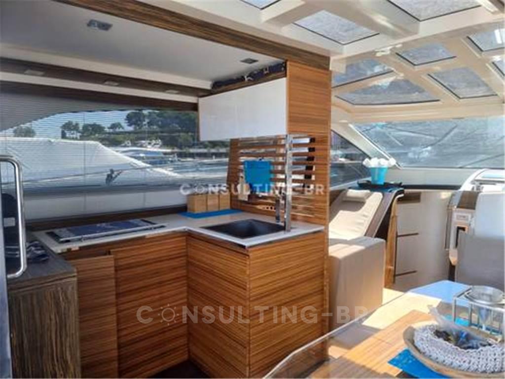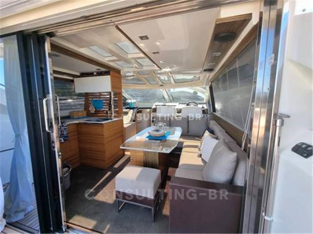 Impianto idraulico a pressione, caricabatterie, esterno e doccia in pozzetto, elica di prua, proiettore, flap idraulici, hardtop, illuminazione subacquea, passerella idraulica a scomparsa, piattaforma da bagno abbassabile in teak, verricello elettrico, scaletta da bagno, tavolo da pozzetto, teak nel pozzetto, doppio allacciamento alla rete elettrica, allacciamento all’acqua di terra e 2 a poppaVerricello di traino.