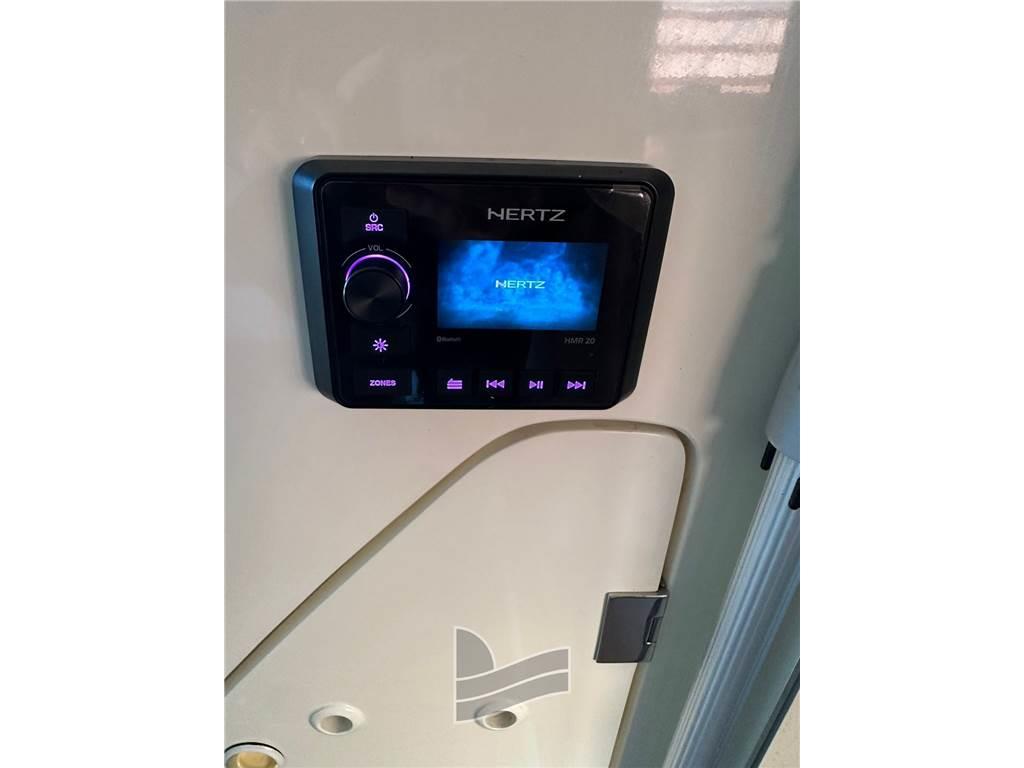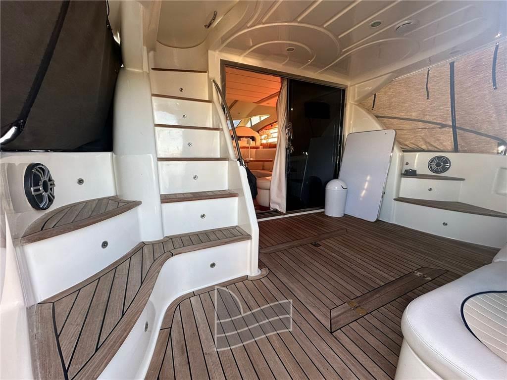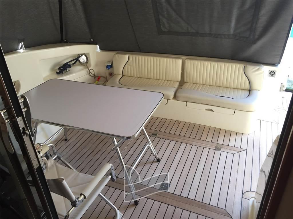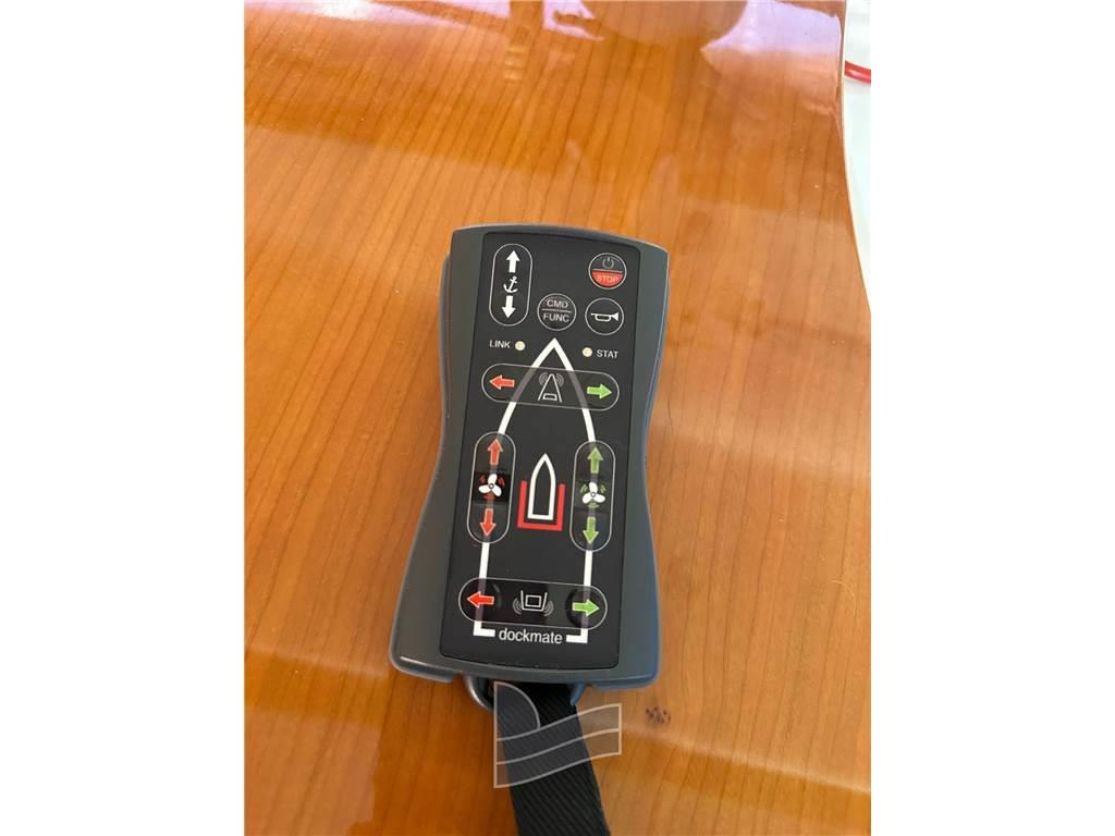 Allarme motore, Ancora, Cavo corrente di banchina, Doccia esterna, Elica di prua - bow thruster, Faro orientabile, 2 Flap idraulici, Impianto antincendio, Passerella, Piattaforma (di poppa in teak), Pompa di sentina elettrica, Porta ingresso, Pozzetto Teak, Presa 220V banchina, Rollbar, Salpa Ancore Elettrico, Scaletta da bagno, Tavolo pozzetto, Tromba.
