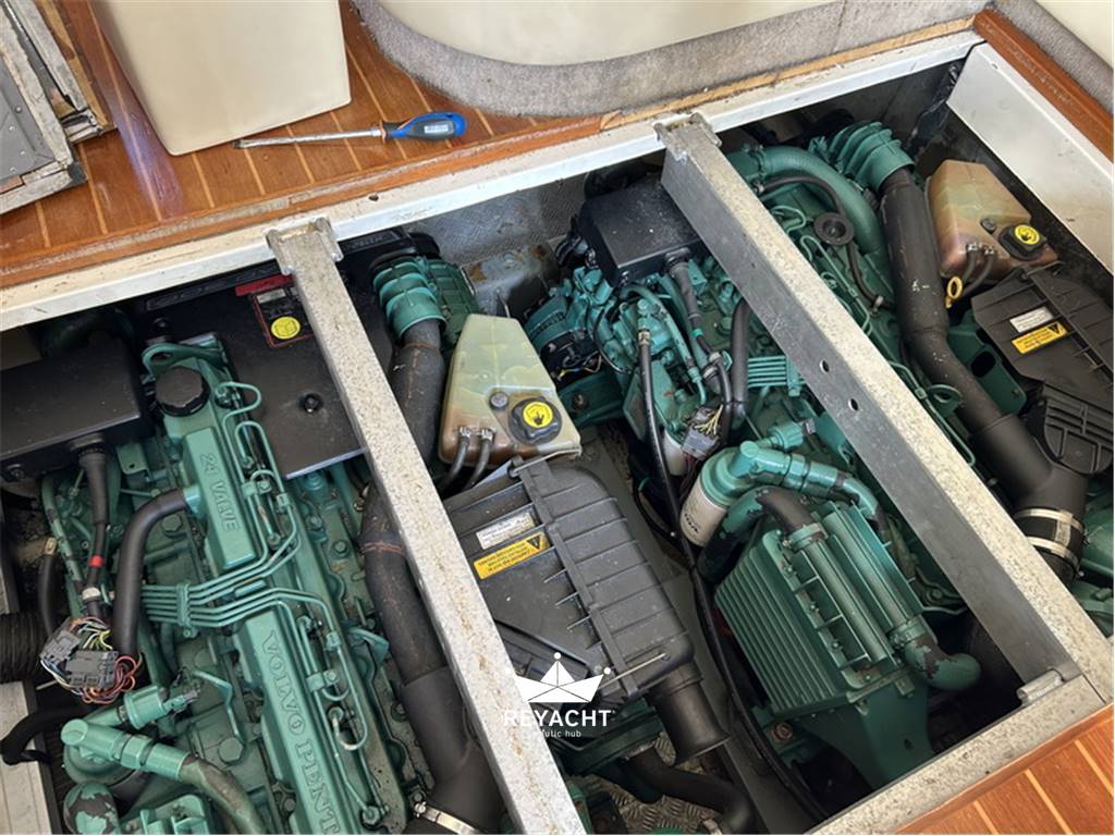 La motorizzazione è affidata ai robusti Volvo Penta KAMD 300 con trasmissione in Linea d'Asse, una configurazione molto ricercata per la sua affidabilità, la semplicità di manutenzione e l'ottima tenuta di mare. Questi motori garantiscono una navigazione fluida, sicura e dai consumi equilibrati.