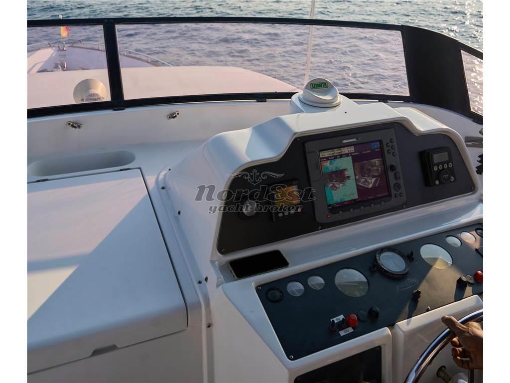 Prezzo diminuito per vendita immediata! Importante Motor Yacht con ampi spazi, sia in coperta che sul fly. Armatore molto preparato e meticoloso. Imbarcazione mantenuta e gestita in maniera perfetta. Cuscinerie esterne nuove sia a prua che sul fly, saloni interni con cuscineria in pelle, aria condizionata, strumentazioni elettronica full, plancetta di poppa munita di due comode scalette per la risalita. Motori con solo 980 ore di moto, dissalatore nuovo.