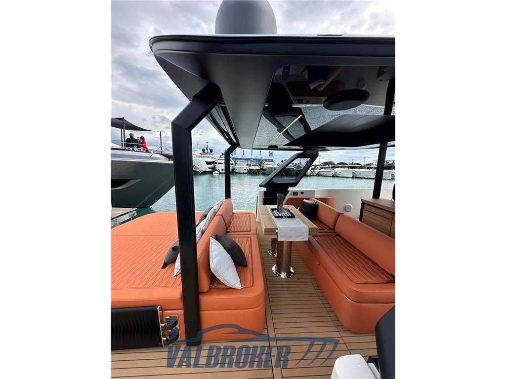 AIS, Allarme motore, Ancora (digitale VOLVO PENTA DPS + assisted docking), Auto Dynamic Trim Interceptor, Autoclave, 4 Batterie, Bussola, Camminamenti laterali in teak (sintetico), Caricabatterie, Contamiglia, 2 Display (16''), Doccia esterna, Elica di prua - bow thruster (proporzionale), Flap idraulici, GPS, Joystick, Lavandino nel Pozzetto, Luci di cortesia, 6 Luci subacquee, Passerella (idraulica), Piattaforma (idraulica tender-lift 130 kg), Pilota automatico, Plotter con antenna GPS, Pompa di sentina automatica, Pompa di sentina elettrica, Pozzetto Teak (sintetico), Presa acqua banchina, Radio VHF, Salpa Ancore Elettrico, Scaletta da bagno, Tavolo pozzetto (teak), T-Top
