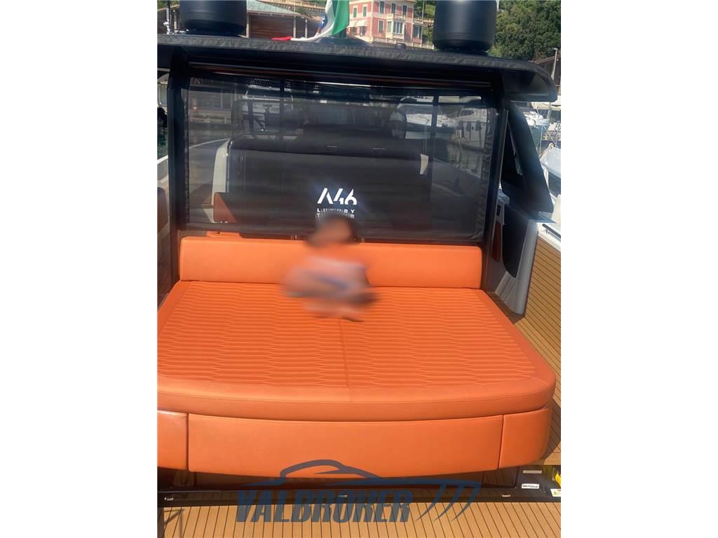A renderlo così versatile e accattivante sono lo scafo dal design impeccabile, una coperta che sembra sconfinata e un'eccezionale cura estetica per i dettagli. Christian Grande, direttore artistico, ha progettato un'imbarcazione dalle linee pulite e decise, dal carattere deciso. Un carattere che si apprezza anche al timone: l'A46 Luxury Tender trasmette la sensazione di un'imbarcazione molto agile e morbida, reattiva nelle virate e con la giusta potenza. 2xVolvo Penta IPS/650 D6 con poche ore di moto.