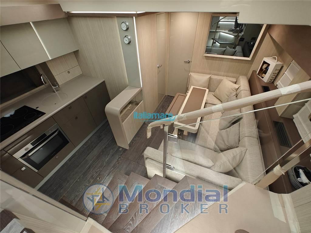 Salone è posto subito sotto coperta, è un ambiente arioso e ben illuminato da grandi finestrature nello scafo. Ospita la dinette principale e la cucina.