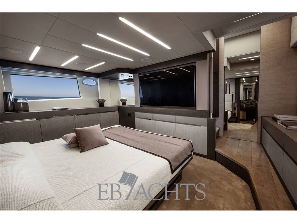 Insuperabili sono i dettagli di alta qualità e innovazione che danno vita ad ambienti eccezionali per estetica e funzionalità. Il ponte principale, con doppio accesso laterale, garantisce intimità e privacy. La plancia di comando è un capolavoro progettuale di eleganza, tecnologia e sportività.