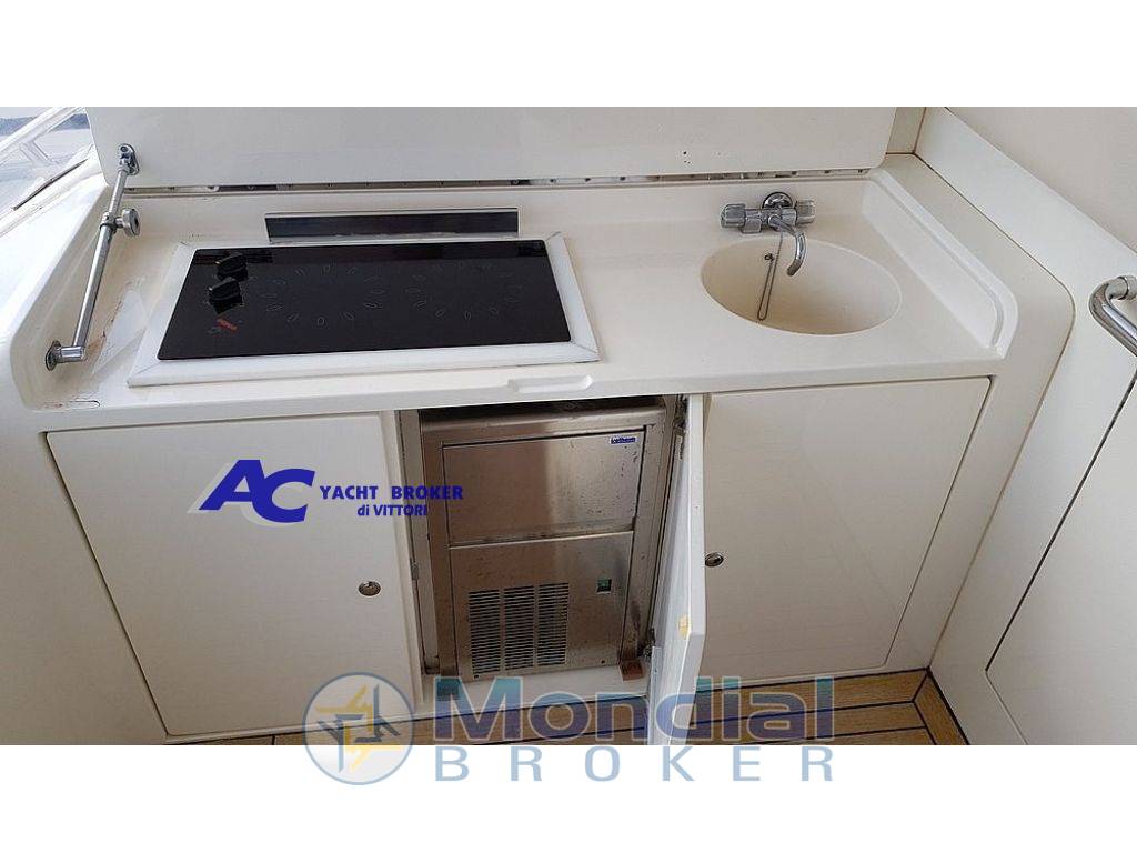 Generatore da 16 Kw. Onan (sbarcato e revisionato), aria condizionata caldo/freddo + pozzetto, elica di prua, boiler, autoclave, carica batterie + inverter, passerrella idraulica, cuscineria prendisole e tendalini completi + tenda araba a poppa, pozzetto e pedana di poppa in teak, 2 frigo + ice-maker + congelatore, cucina esterna con piano a induzione, tender con motore da 2,5 cv