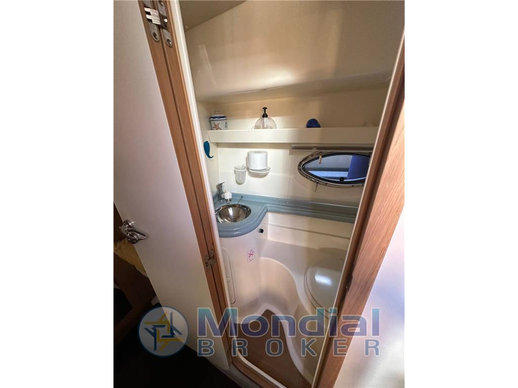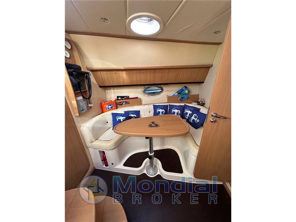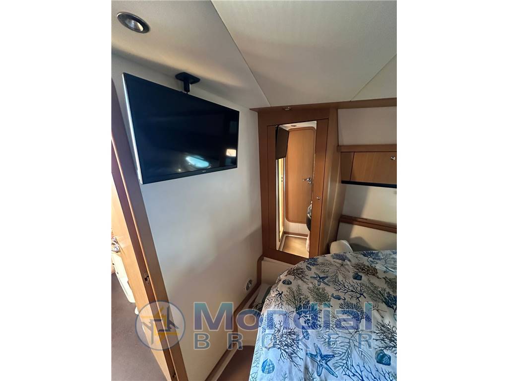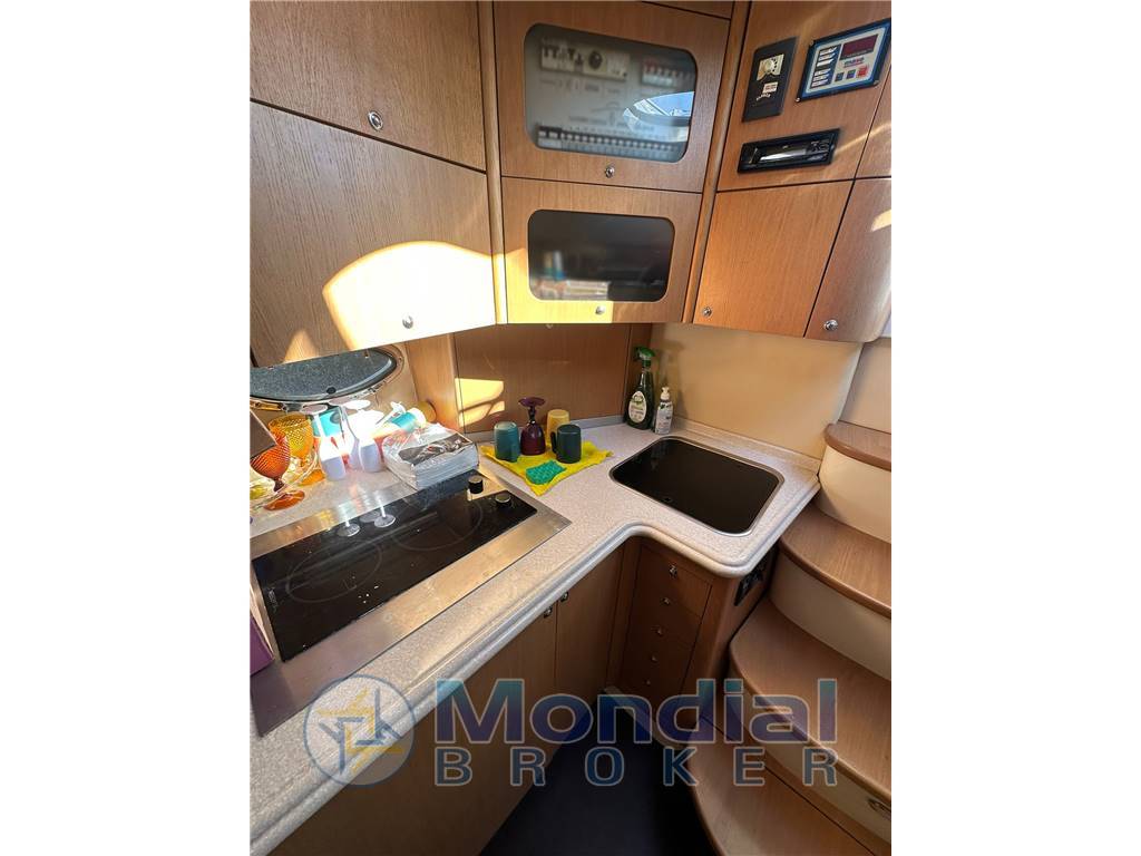 Dotazioni di bordo: mobile living con lavabo, piastra e frigo VITIFRIGO C 35 BT, ROLL BAR in VTR con tenda parasole sia di navigazione che laterale, hangar tender con apertura elettrica, scaletta di risalita, passerella idraulica BIOINOX, rivestimento in teak per camminamenti passaggio laterali, blower, doppio prefiltro Racor.