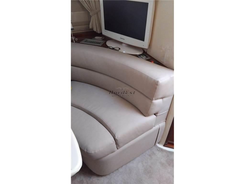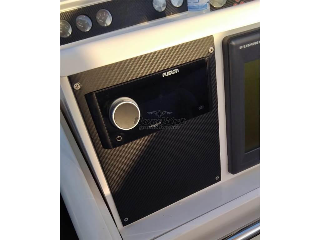 La strumentazione elettronica è completa e all’avanguardia, con autopilota, ecoscandaglio, GPS/Plotter, Radar e VHF. A bordo non manca nulla per il massimo del comfort: generatore, aria condizionata, elica di prua, passerella, plancetta rivestita in teak, luci subacquee e un sistema di intrattenimento con impianto TV e stereo. La cucina è completamente attrezzata per permettere di vivere lunghi periodi in mare senza rinunciare a nessuna comodità.
