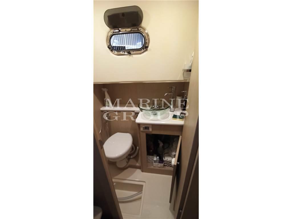 1 cabina, 5 posti letto, 1 bagno. Ampia cabina a prua completa con letto matrimoniale + 1 posto letto separato, servizi igienici; dinette a U trasformabile e cucina esterna attrezzata con due fuochi a gas, lavello e frigo da 60 lt.