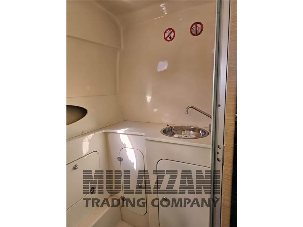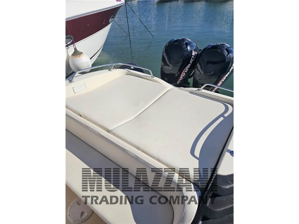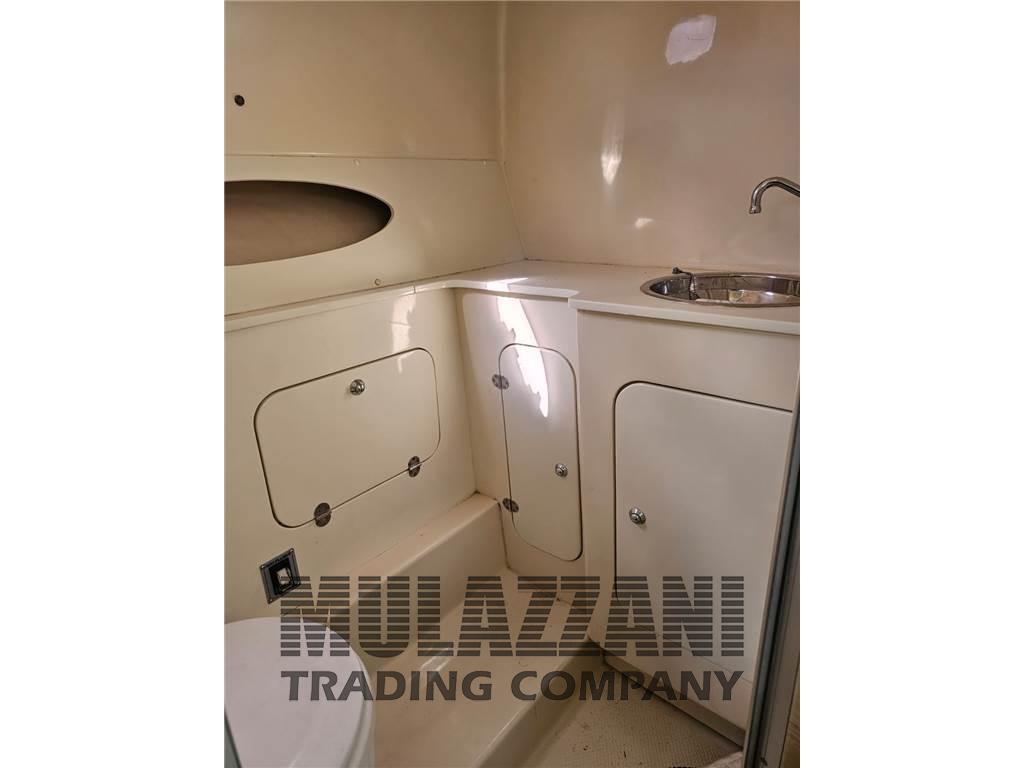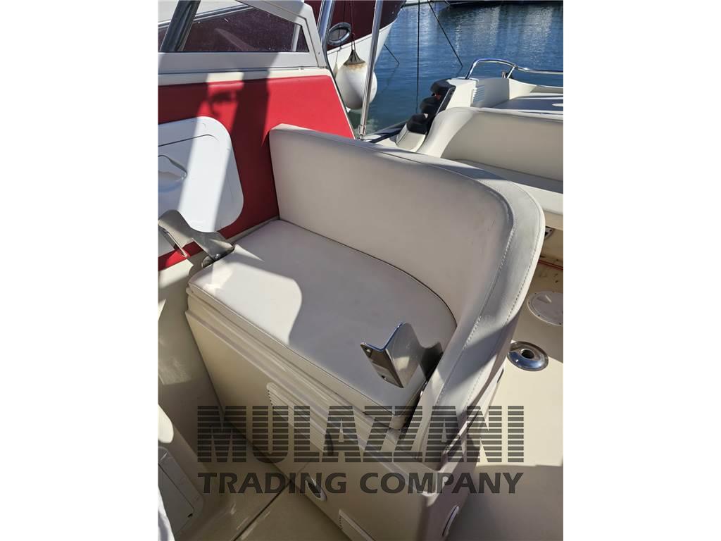 Acqua Calda, Bimini, Boiler (elettrico), Cucina, Cuscineria completa (esterna e interna in cellula chiusa), Cuscineria di poppa, Cuscineria di prua, Cuscineria Pozzetto, Dotazioni di sicurezza entro 12 miglia, Giubbetti di salvataggio, Impianto TV, Indicatore del serbatoio del carburante, Inverter, Prese interne 12v, Prese interne 220v, Salvagente anulare con cima munita di boetta luminosa, Tendalino (+ laterali traforati), WC marino elettrico, tenda da campeggio nautico