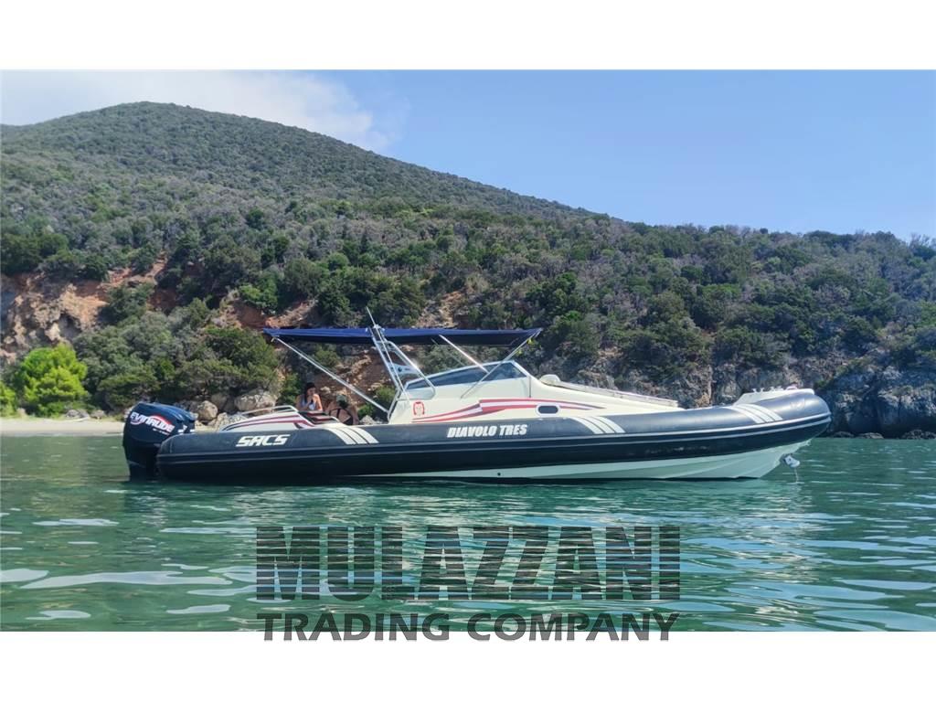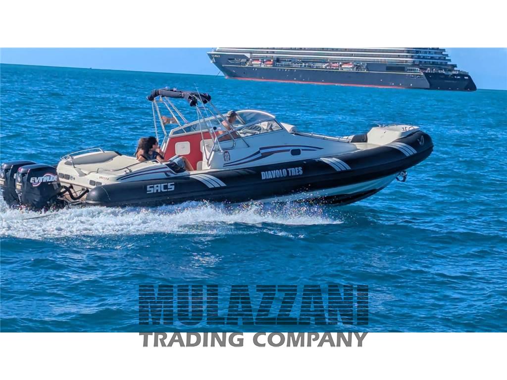 Gommone cabinato NATANTE prodotto da Sacs Marine, noto per la sua stabilità e prestazioni.
