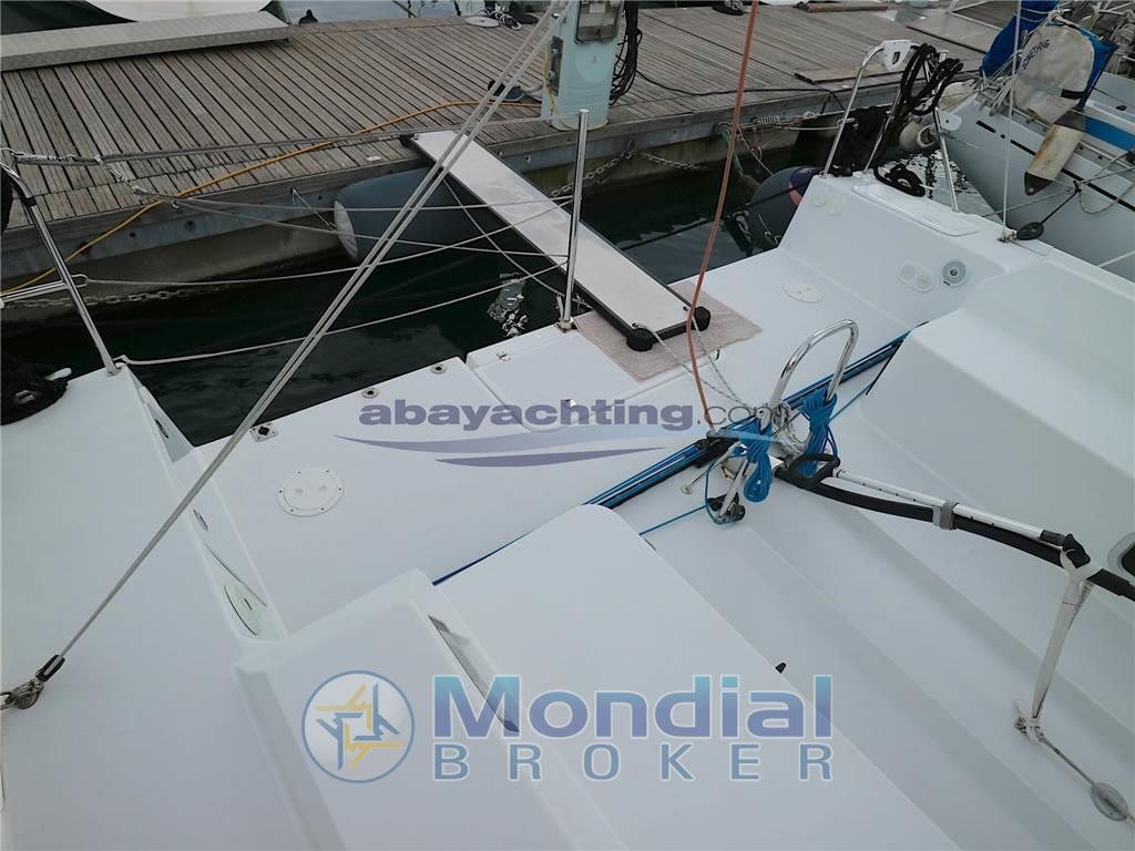 Accessori: albero in carbonio ZSpars, bompresso estraibile in carbonio, avvolgifiocco flat deck, strallo di trinchetta amovibile, elettronica NKE + B&G, riscaldamento Eberspacher, 5 winch (di cui 1 elettrico e 1 all'albero), cappottina, pannello solare da 80w, elica tripala abbattbilie Volvo.