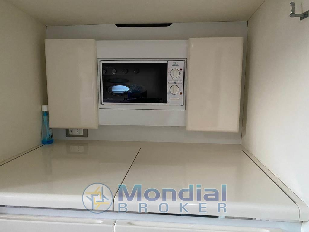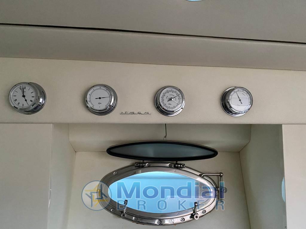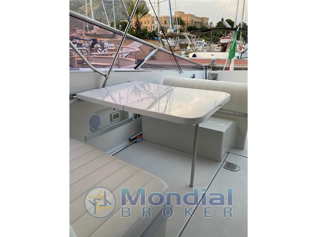 Allarme sentina, Autoclave, Autogonfiabile, Elica di prua, Lavaggio catena, Pompa di sentina automatica, Presa 220V banchina, Salpa ancora elettrico, Tavolo in pozzetto Cucina, Microonde, Piastra in vetroceramica Dotazioni di sicurezza entro 50 miglia, Zattera di salvataggio Aria condizionata, Clima reversibile, Dissalatore, Prese interne 12V, Prese interne 220V, Riscaldamento, Wc marino elettrico Altoparlanti, Radio AM/FM Plotter con antenna GPS, Radio VHF Bimini, Copriscafo, Cuscineria completa, Teli chiusura T-Top, Tendalino