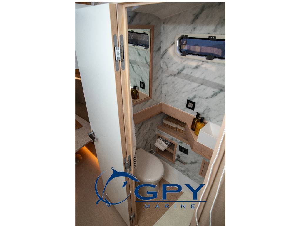 Il cantiere lavora internamente tutto l'hardware dell'imbarcazione, garantendo massimo livello di personalizzazione. Imbarcazione realizzata in vetroresina in infusione.