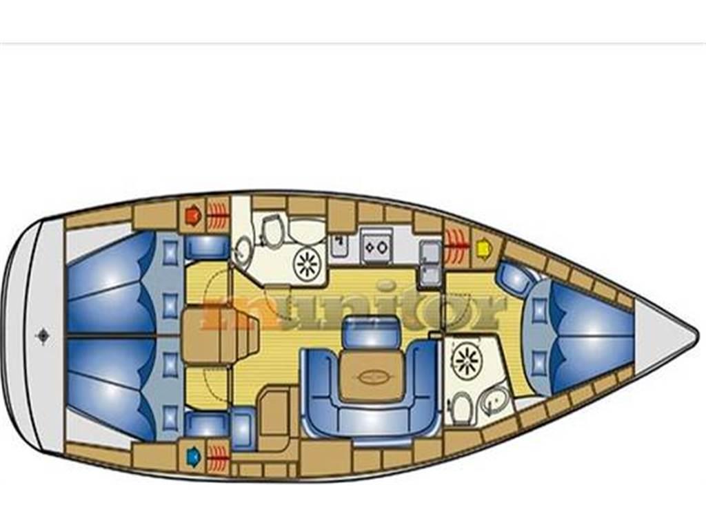 Salone, cucina, cabina di prua, 2 cabine di poppa, bagno, 2 WC, pozzetto