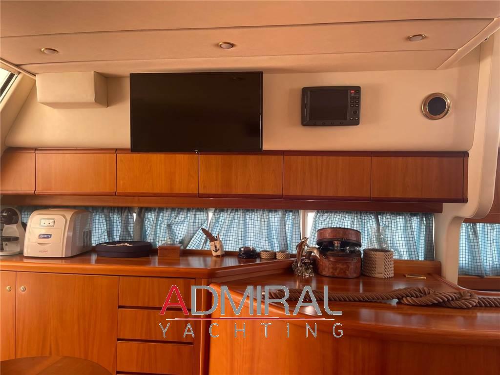 Allarme fumo/gas, Allarme motore, Allarme sentina, Ancora, Angolo barra, Antenna radar, Apertura Vano Motore Elettrica, Autoclave, Batterie, Bussola, Caricabatterie, Comando motori elettronico, Computer di bordo, Contametri catena, Doccia esterna, Doppia timoneria, Ecoscandaglio, Elica di poppa - stern thruster, Elica di prua - bow thruster, Faro orientabile, Flap idraulici, GPS, Impianto antincendio, Indicatori Flaps, Lavaggio catena, Log, Luci di cortesia, Passerella, Piattaforma, Pilota automatico, Plotter con antenna GPS, Pompa di sentina automatica, Pompa di sentina elettrica, Pompa di sentina manuale, Porta ingresso, Pozzetto Teak, Presa 220V banchina, Radar, Radio VHF, Rollbar, Salpa Ancore Elettrico, Scaletta da bagno, Sedile Copilota, Selle per Tender, Tientibene con cancelletti, Tromba, Winch tonneggio di poppa