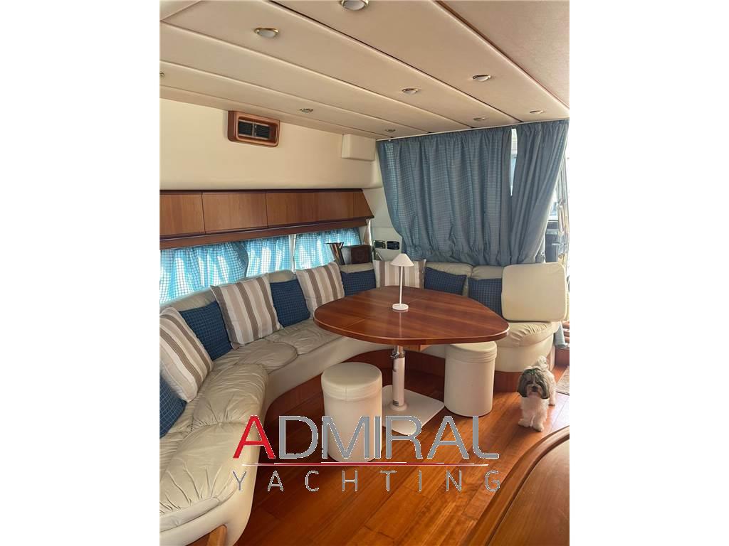 Altoparlanti, Aria condizionata, Asciugatrice, Bimini, Boiler, Cassaforte, Clima reversibile, Cucina, Cuscineria completa, Cuscineria di poppa, Cuscineria di prua, Cuscineria fly, Cuscineria Pozzetto, Digitale Terrestre, Forno, Frigorifero esterno, Frigorifero interno, Impianto acque nere, Impianto TV, Inverter, Lavatrice, Pavimento interno in legno, Piastra in vetroceramica, Prese interne 12v, Prese interne 220v, Radio AM/FM, Riscaldamento, Serbatoio Acque Nere, Stereo, Teli copri finestra, Telo copriconsolle, Telo coprisedile, TV, WC marino elettrico, Zanzariere
