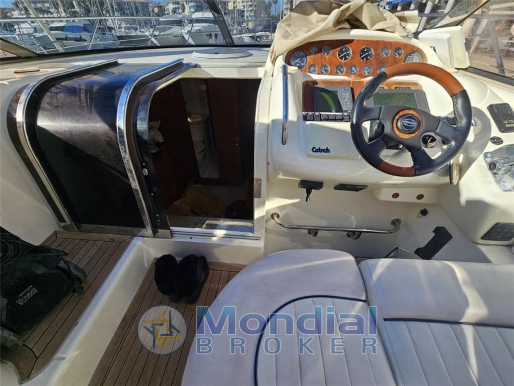 Le dotazioni opzionali includono elica di prua, pilota automatico, generatore, GPS/ecoscandaglio, flap, parabola satellitare e verricello elettrico.