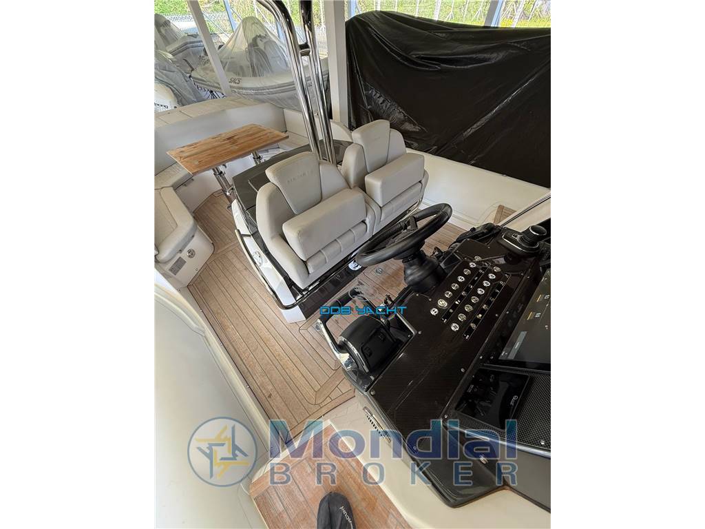 Strumentazione: strumenti motore digitali interfacciati su gps GARMIN, manette elettroniche con 1 LEVEL, joystick MERCURY con SKYHOOK, gps GARMIN interfacciato con eco, conta catena QUICK CHC, vhf GARMIN, bussola, luci via, tromba, stereo FUSION con casse ed amplificatore.
