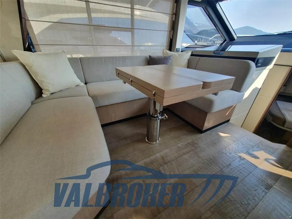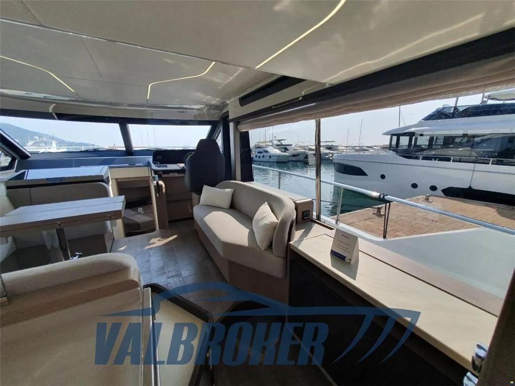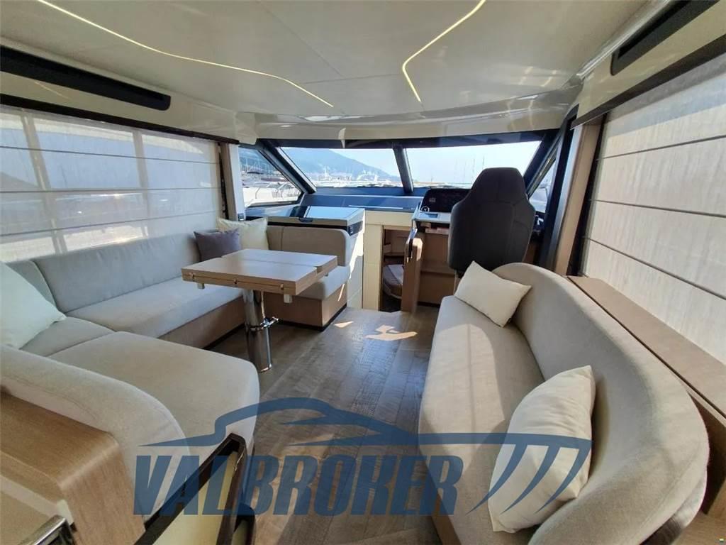 Altoparlanti, Aria condizionata (Mediterranea 48.000 btu Dometic), BBQ/ Grill, Boiler, Cassaforte, Congelatore, Cuscineria completa, Digitale Terrestre, Dissalatore (140 l/h), Forno, Frigorifero esterno, Frigorifero interno, ICE Maker, Inverter (1800w), Lavastoviglie (Bosch), Meccanismo saliscendi per TV, Pavimento interno in legno, Stereo, Telecamera (sala macchine e pozzetto), Telo Copertura Fly, Telo coprisedile, Tenda Elettrica (pozzetto), TV, Zanzariere, Volante in pelle con razze in acciaio sul ponte principale e volante in pelle idrorepellente con razze in acciaio sul flybridge, Gradini del flybridge in teak massello, Divano a U di prua color ecru in schiuma a rapido drenaggio con copertura grigio perla, Tavolo in teak di prua regolabile in altezza con cuscino sfoderabile color ecru in schiuma a rapido drenaggio per la trasformazione in prendisole con copertura grigio perla, Tende veneziane manuali per la finestra della cucina e tenda in tessuto manuale per la porta di accesso scorrevole