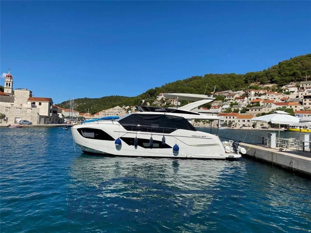 Flybridge del cantiere italiano Absolute Yachts, progettato per massimizzare spazio e luminosità. Motorizzato con 2x480 HP Volvo Penta D6-IPS650. Dispone di 3 cabine: armatoriale a prua, VIP a centro barca e una doppia con letti singoli e 2 bagni.