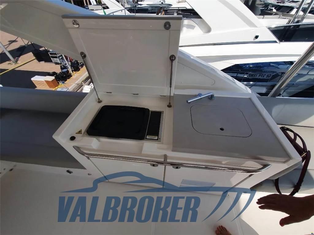 Ancora (inox ultra 35 kg), Autoclave, Batterie, Bussola, Caricabatterie, Comando motori elettronico, 2 Contametri catena, 2 Display, Doccia esterna, Elica di prua - bow thruster (doppio comando), Faro orientabile (doppio comando), 2 GPS (Chartplotter da 16''), Hard top, Joystick, Luci di cortesia, Luci subacquee, Passerella (retrattile elettroidraulica), Piattaforma (idraulica, 300 kg teak massello), Pilota automatico, Porta ingresso, Porta laterale, Radio VHF, Salpa Ancore Elettrico, Scaletta da bagno (integrata nella piattaforma), Sedile Copilota, Tavolo pozzetto (teak con copertura grigio perla), Tavolo Salone Abbattibile, Winch tonneggio di poppa