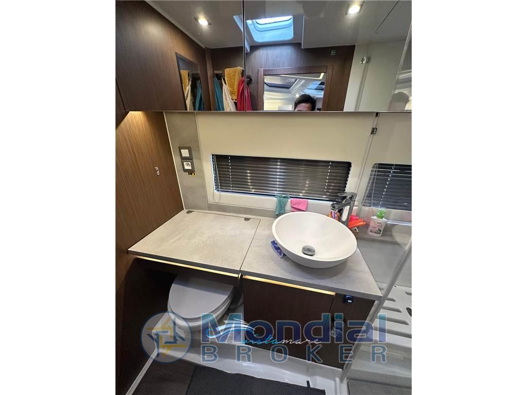 Aria condizionata, Impianto acque nere, Pavimento interno in legno, Prese interne 12v, Prese interne 220v, Serbatoio Acque Nere, WC marino elettrico.
