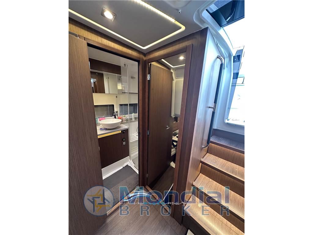 Allarme motore, Camminamenti laterali in teak, Doccia esterna, Elica di prua - bow thruster, Flap elettrici, Indicatori Flaps, Lavandino nel Pozzetto, Luci di cortesia, Luci subacquee, Piattaforma, Pompa di sentina automatica, Pozzetto Teak, Salpa Ancore Elettrico, Tavolo pozzetto, Tromba, T-Top.