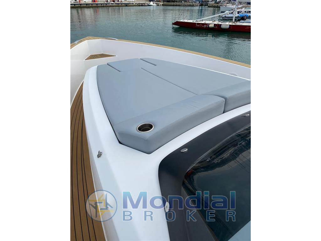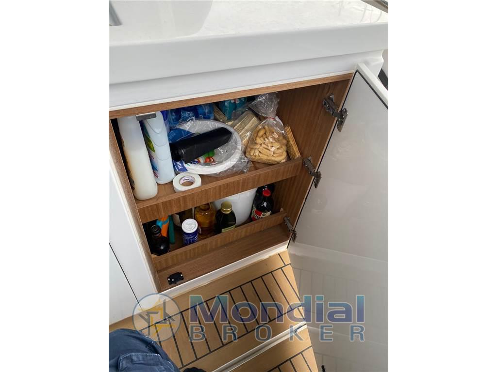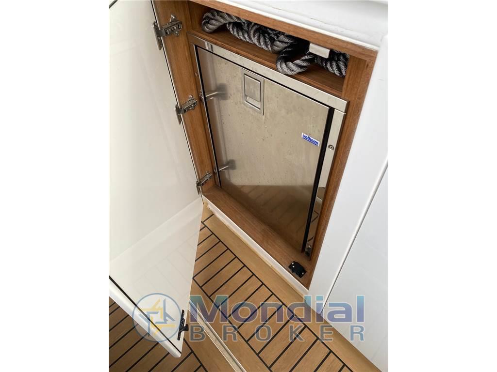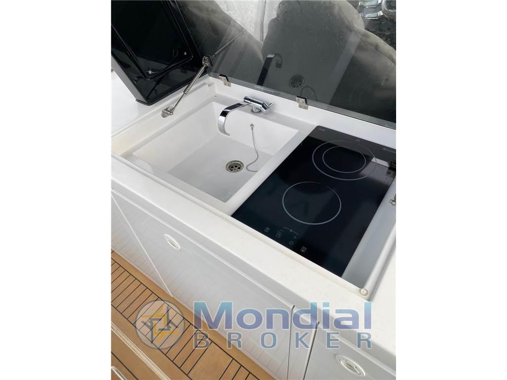 Allarme sentina, Ancora, Auto-trim, Autoclave, Autogonfiabile, Caricabatterie, Doccia esterna, Elica di prua, Flap elettrici, Hard Top, Impianto antincendio, Porta laterale, Presa 220V banchina, Salpa ancora elettrico, T-Top, Tavolo in pozzetto, Tromba, Winch elettrico Cucina, Frigorifero esterno, Piastra in vetroceramica Dotazioni di sicurezza entro 50 miglia Prese interne 12V, Prese interne 220V, Wc marino elettrico Altoparlanti, Radio AM/FM Antenna radar, Bussola, Comando motori elettronico, Contametri catena, Pilota automatico, Plotter, Plotter con antenna GPS, Radar, Radio VHF Cappottina, Copripozzetto, Cuscineria completa, Prendisole, Tenda elettrica, Tendalino