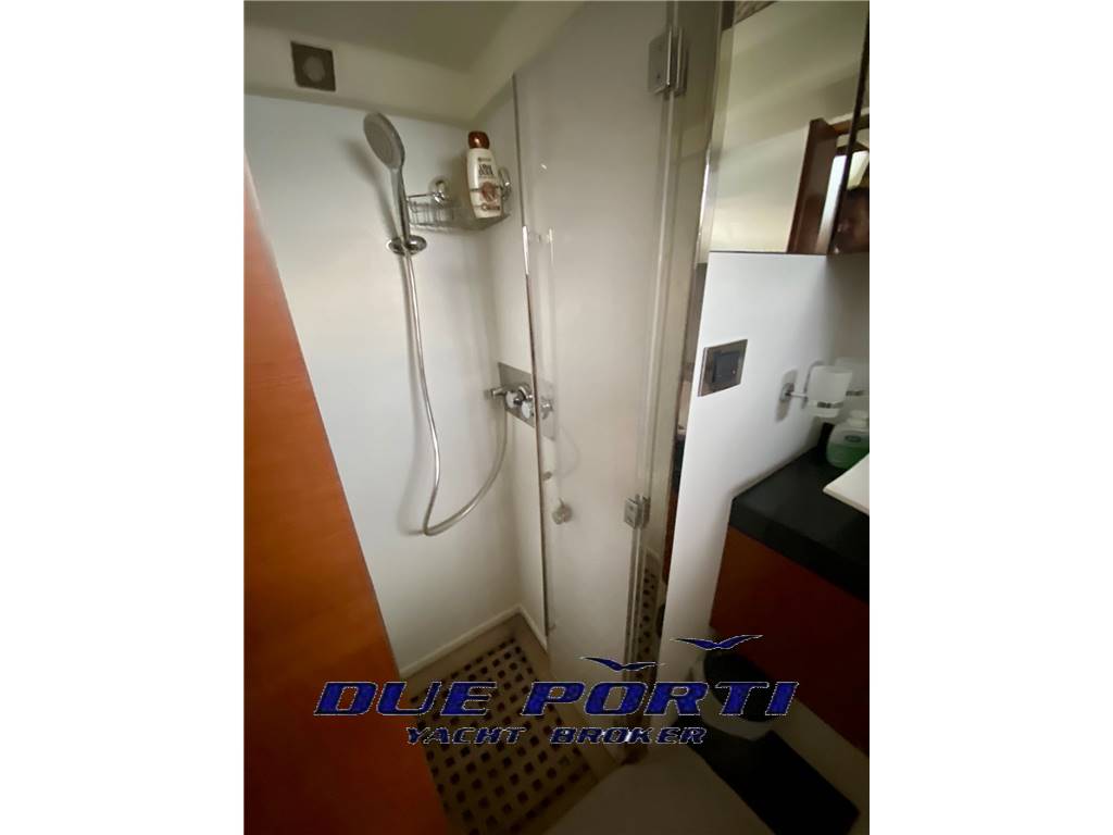 Cabina armatoriale a tutto baglio a centro barca con scala di accesso indipendente, bagno ensuite con box doccia separato.