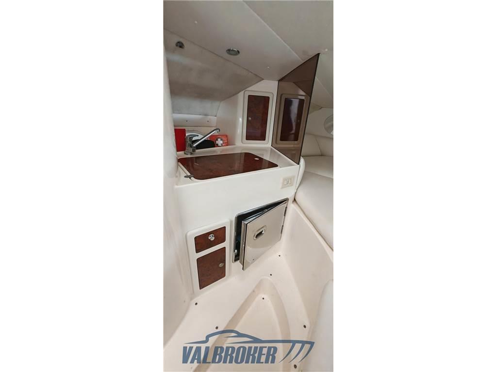 Scafo solido, sportivo, robusto sinonimo di alta qualità costruttiva ed eleganza. Prendisole fisso a poppa. Motorizzato 2x350 Mercury Magnum V8 EFI/Mp Bravo I benzina.