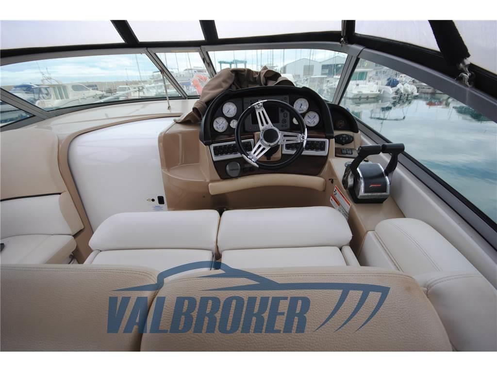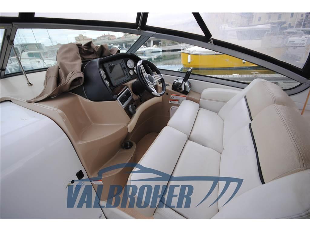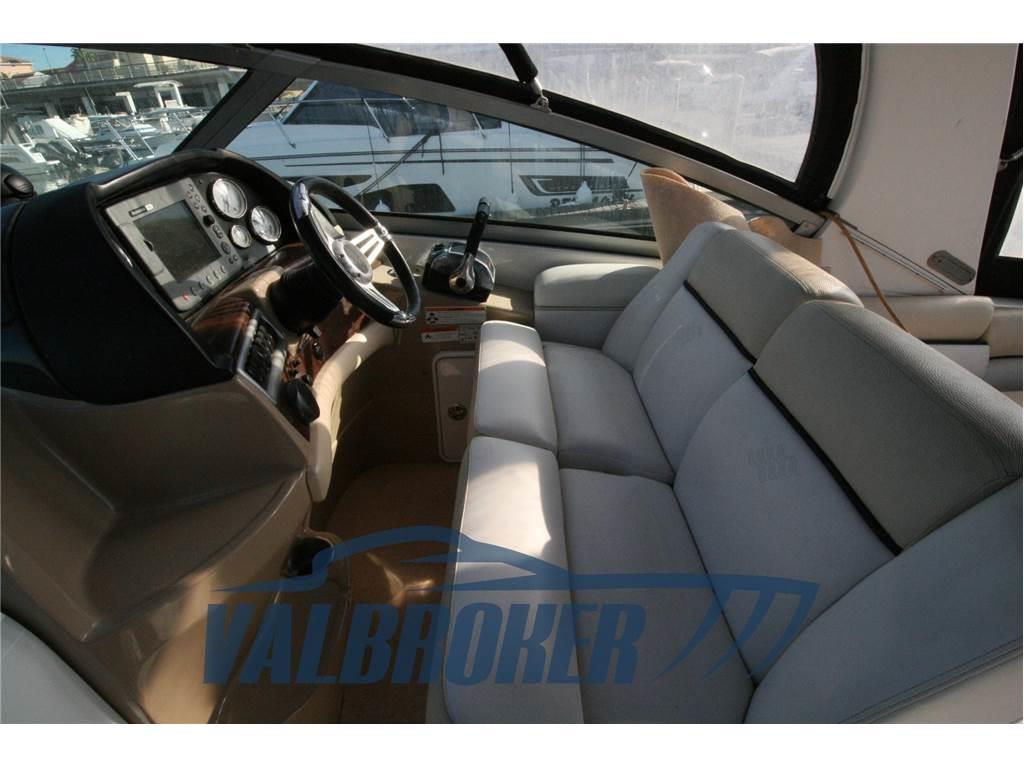 Settembre 2025: motori 5.0 da 260 HP sbarcati per essere sostituiti con 2x MERCRUISER 320 HP V8 6.2 BRAVO 3 del 2010. Comodo accesso a prua attraverso l'apertura centrale del parabrezza.