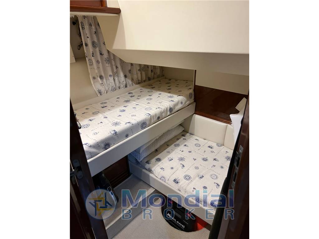 Cabina matrimoniale a prua, cabina ospiti doppia in piano, cabina ospiti doppia con letti ad L sovrapposti, 2 toilettes con wc Tecma, cucina, dinette. Calpestio in parquet. Cabina marinaio.