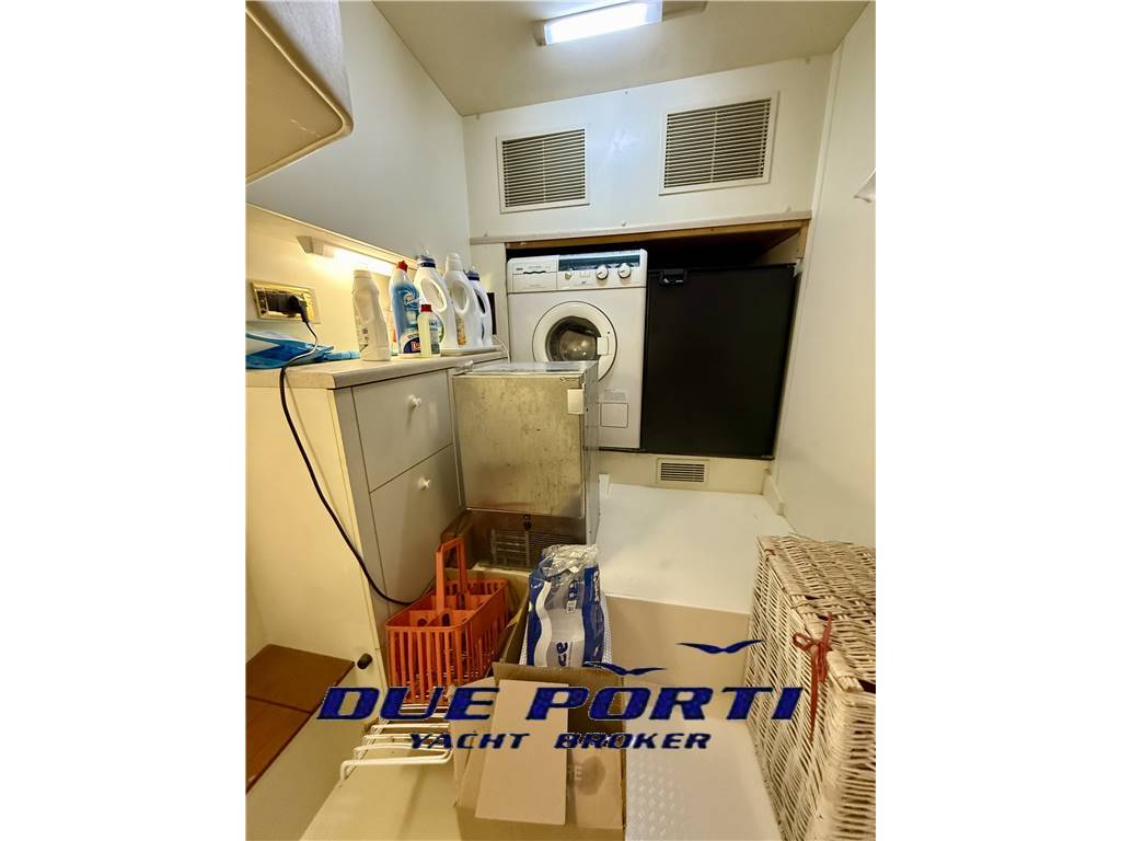 Ampia zona tecnica sottocoperta attrezzata con lavasciuga, asse da stiro e frigorifero aggiuntivo.