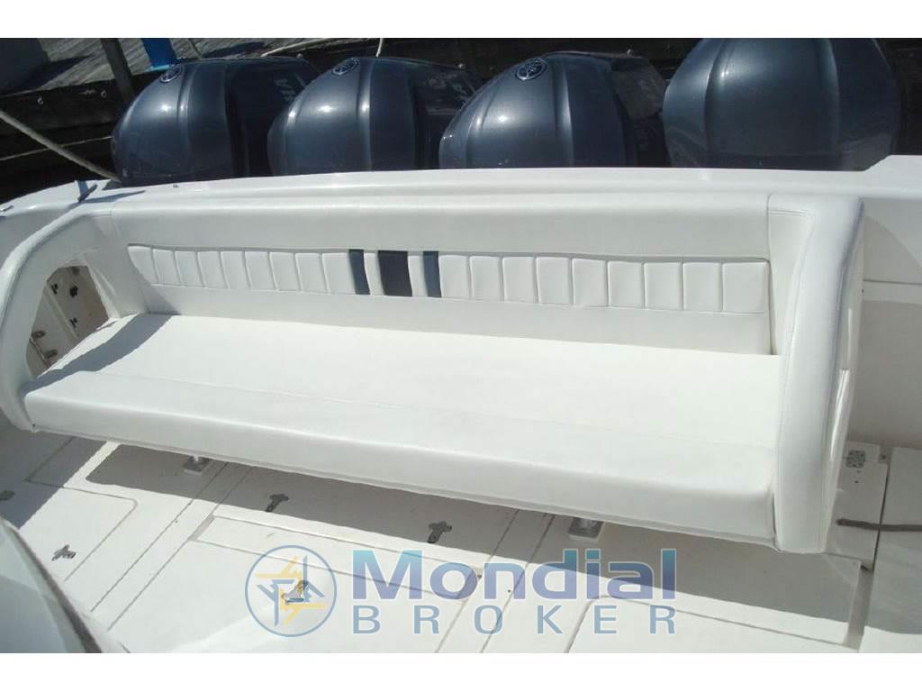 Altoparlanti, Aria condizionata (doppio ciclo), Boiler (bivalente), Clima reversibile, Congelatore, Cucina, Cuscineria di prua, Fornello, Frigorifero esterno, Frigorifero interno, Impianto acque nere, Microonde, Pavimento interno in legno, Piastra elettrica, Portacanne, Prese interne 12v, Prese interne 220v, Radio AM/FM, Serbatoio Acque Nere, Stereo (Fusion + Subwoofer 400W), Telo copriconsolle, Telo coprisedile, Vasca del vivo, Vasca pescato, WC marino elettrico (con maceratore), Porta laterale sulla fiancata - Pompa acqua salata per lavaggio pozzetto - Musone di prua in acciaio inox - Tavolo elettrico.