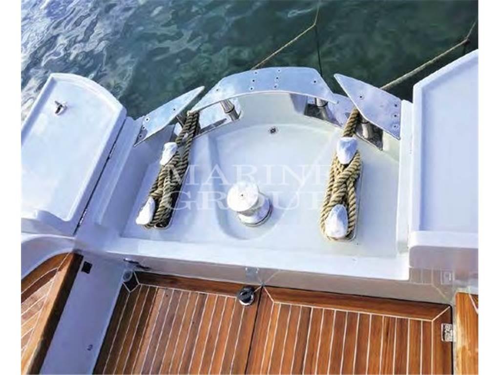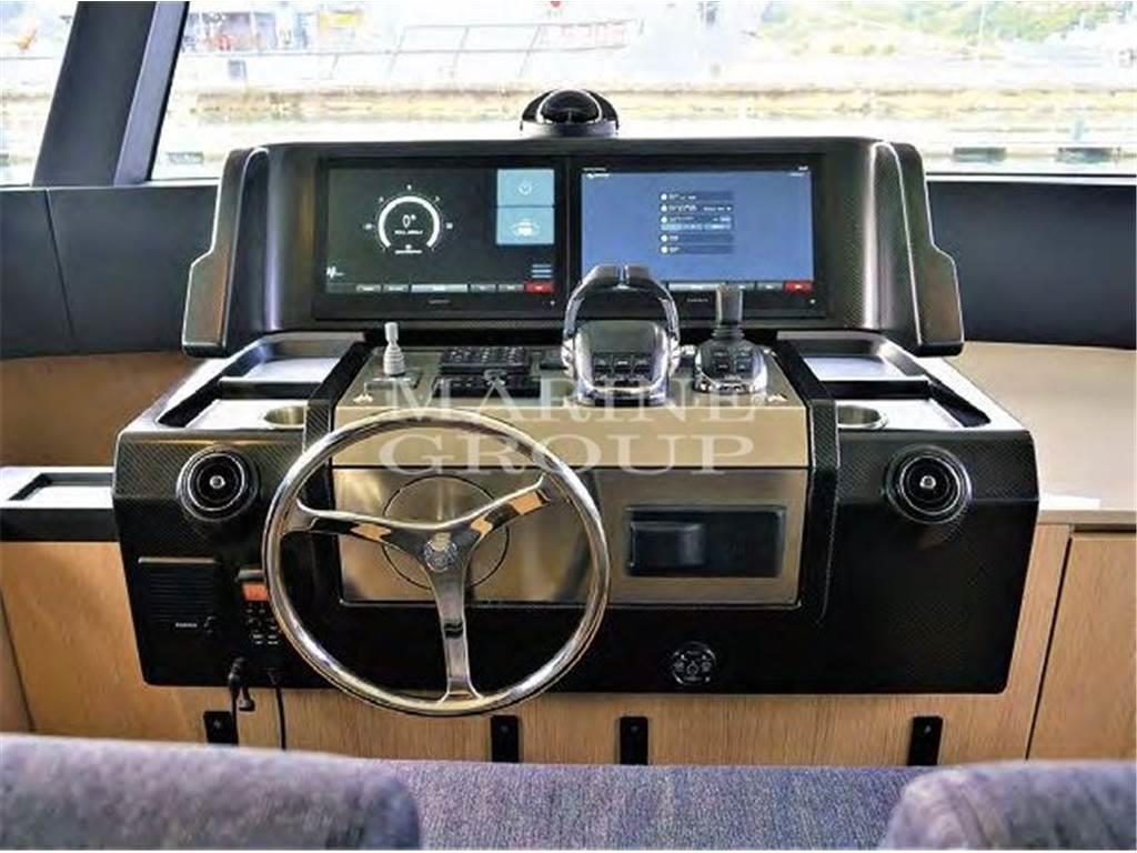 Altoparlanti, Antenna Satellitare TV, Aria condizionata (tropicale), Asciugatrice, BBQ/ Grill, Boiler, Clima reversibile, Congelatore, Copripozzetto, Cuscineria completa, Cuscineria di poppa, Cuscineria di prua (schienale regolabile), Cuscineria fly, Cuscineria Pozzetto, Dissalatore (Idromar), DVD, Forno (combinato), Frigorifero esterno (pozzetto), Frigorifero interno, Impianto TV, Inverter, Lavastoviglie, Lavatrice, Oscuranti, Pavimento interno in legno, Piastra in vetroceramica, Prese interne 12v, Prese interne 220v, Radio AM/FM, Ricevitore satellitare, Serbatoio Acque Nere, Stereo (Fusion), 2 Telecamera (pozzetto e sala macchine), Tendalino (salottino di prua), 4 TV (LCD), Winecooler, Apertura Vano Motore Elettrica, Auto Dynamic Trim Interceptor, Camminamenti laterali in teak, Caricabatterie, Comando motori elettronico, Contametri catena, Doccia esterna (a poppa), Doppia timoneria, Elica di prua - bow thruster, Faro orientabile, Gruette per tender (a scomparsa), Joystick (di manovra), Lavandino nel Pozzetto, Luci di cortesia (camminamenti laterali e pozzetto), Luci subacquee, Passerella, Porta ingresso, Porta laterale, Pozzetto Teak, Presa 220V banchina, Presa acqua banchina, 2 Salpa Ancore Elettrico, Scaletta da bagno, Selle per Tender, Stabilizzatori (Giroscopico Seakeeper), Tavolo pozzetto, Tender, Tromba, T-Top, Tuga in teak, 2 Winch tonneggio di poppa