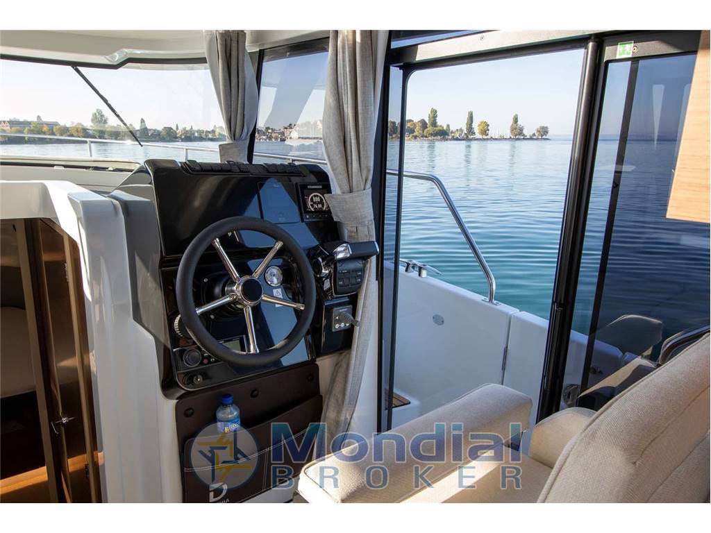 L’ambiente è luminoso, arioso, e la vista a 360° rende lo spazio a bordo lussuoso e accattivante. Il posto di guida ha una perfetta visibilità a 360°, e la porta laterale consente di uscire lateralmente, pe raggiungere la prua con facilità e velocità. Tutti gli spostamenti in questa barca sono sullo stesso piano, senza gradini, e molto comodi.