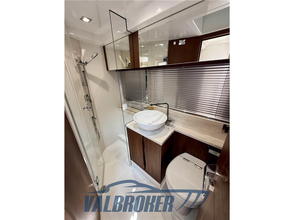 Antenna Satellitare TV, Aria condizionata (caldo/freddo Webasto), BBQ/ Grill, Bimini (top su fly), Boiler (doppio impianto), Cuscineria fly, Forno, Frigorifero esterno (fly Isotherm), Frigorifero interno (Isotherm), Lavastoviglie, Meccanismo saliscendi per TV, Pavimento interno in legno, Piastra elettrica (2 fuochi), Serbatoio Acque Nere, 3 Telecamera (Raymarine), Telo Copertura Fly, 2 TV, 2 WC marino elettrico, BEACH MODE: balconi di poppa pieghevoli e finestre laterali di poppa scorrevoli e apribili, area bar convertibile nel pozzetto laterale, tavolo su fly. Doppio ingresso a poppa, terrazze laterali apribili, garage per stoccaggio.
