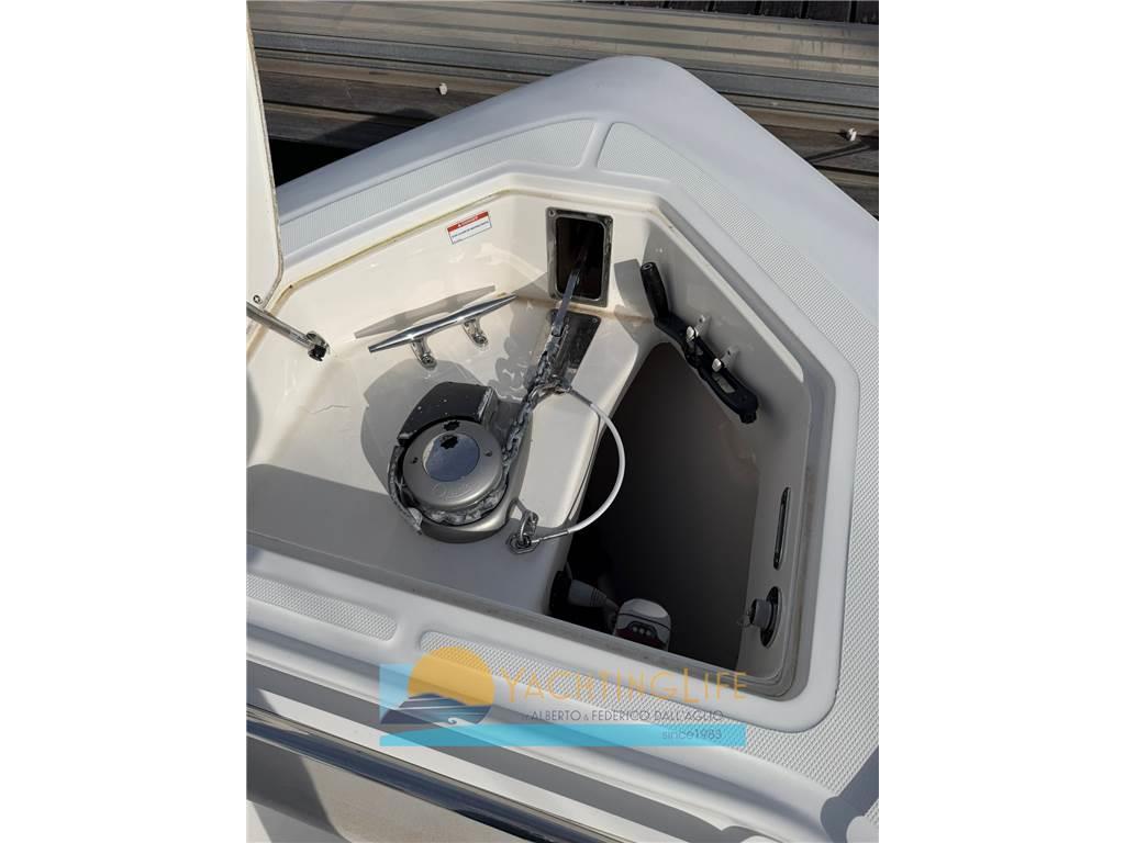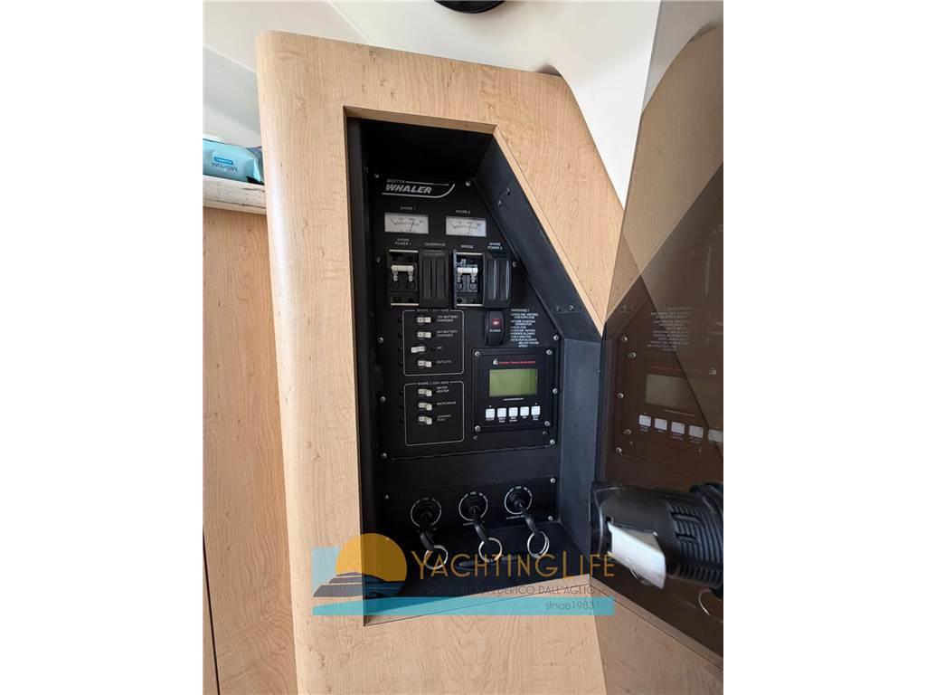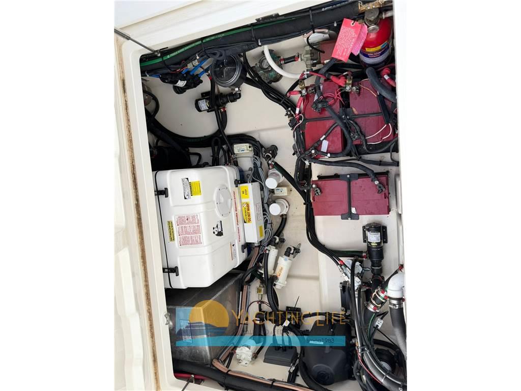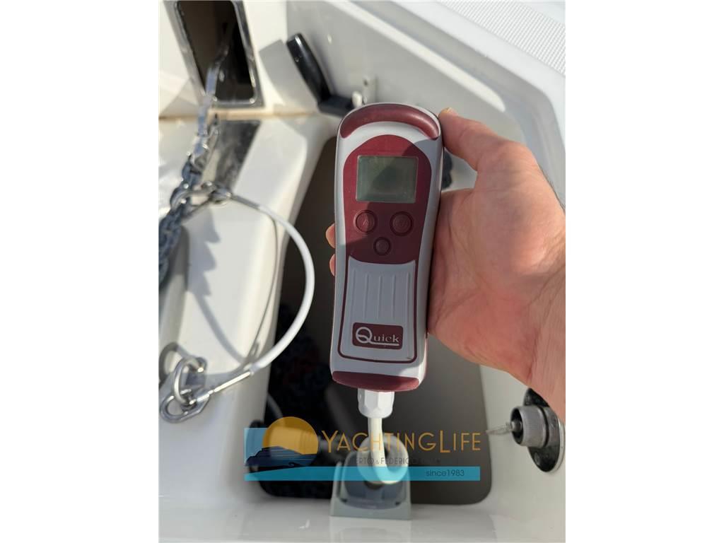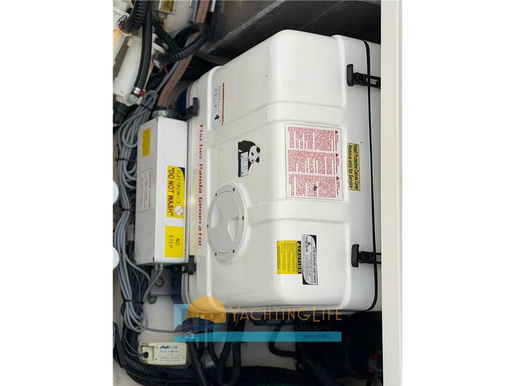 AIS, Allarme motore, Allarme sentina, Alternatore, Ancora, Angolo barra, Autoclave, Batterie, Bussola, Caricabatterie, Cavo corrente di banchina, Comando motori elettronico, Computer di bordo, Contametri catena, Contamiglia, Display, Doccia esterna, Ecoscandaglio, Elica di prua - bow thruster, Faro orientabile, Flap elettrici, GPS, Impianto antincendio, Indicatori Flaps, Lavandino nel Pozzetto, Log, Luci di cortesia, Luci di navigazione, Pilota automatico, Plotter con antenna GPS, Pompa di sentina automatica, Pompa di sentina elettrica, Pompa di sentina manuale, Pompa Lavaggio Ponte, Presa 220V banchina, Radio VHF, Salpa Ancore Elettrico, Scaletta da bagno, Sedile Copilota, Tromba, T-Top